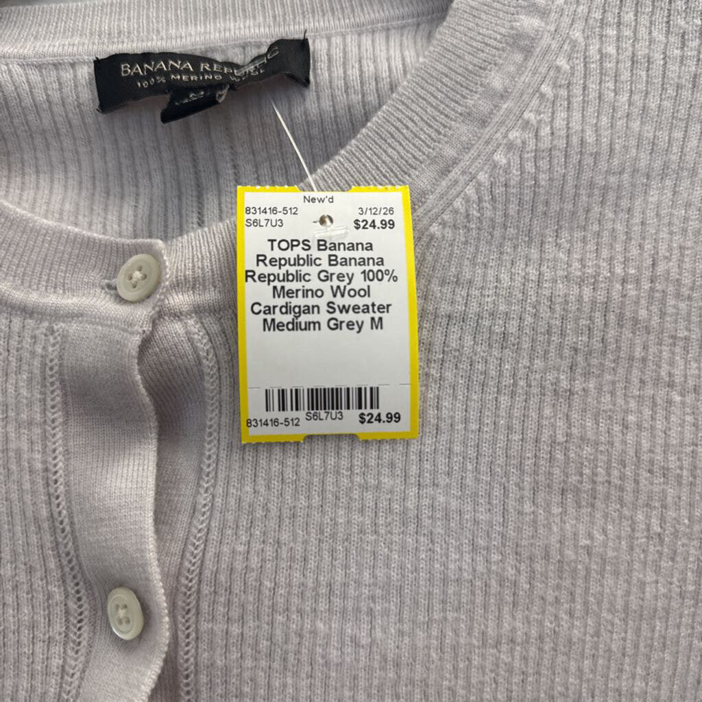 Banana Republic Grey 100% Merino Wool Cardigan Sweater Medium
