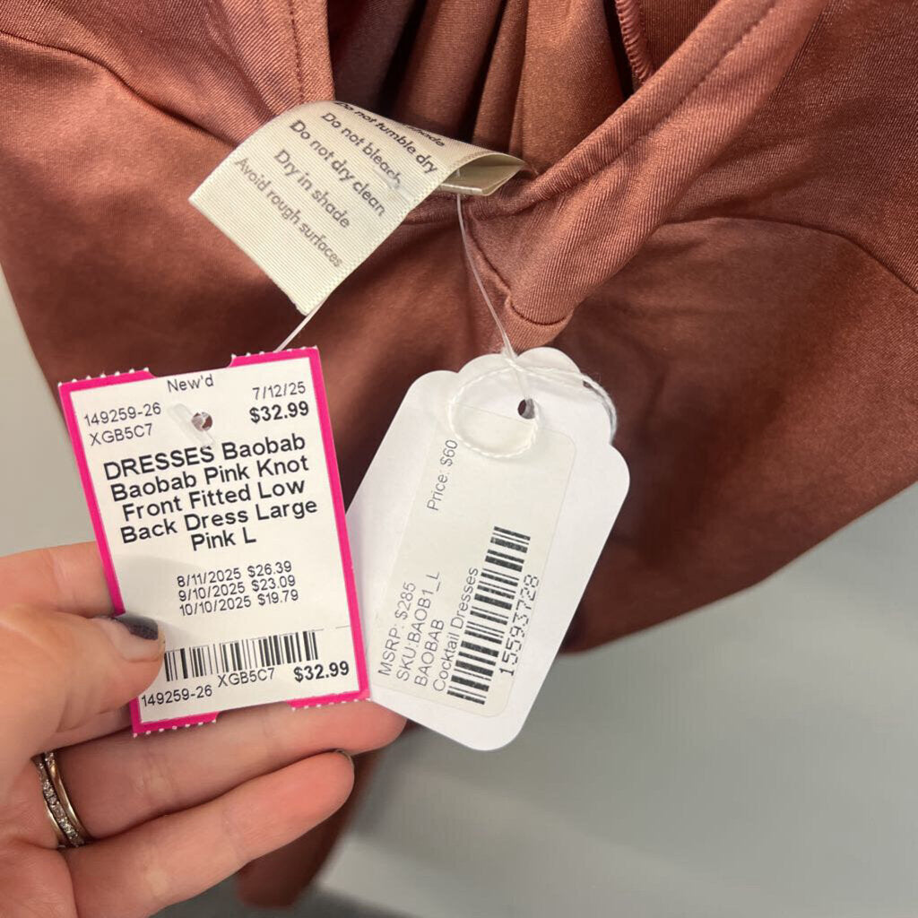 Baobab Pink Knot Front Fitted Low Back Dress Large