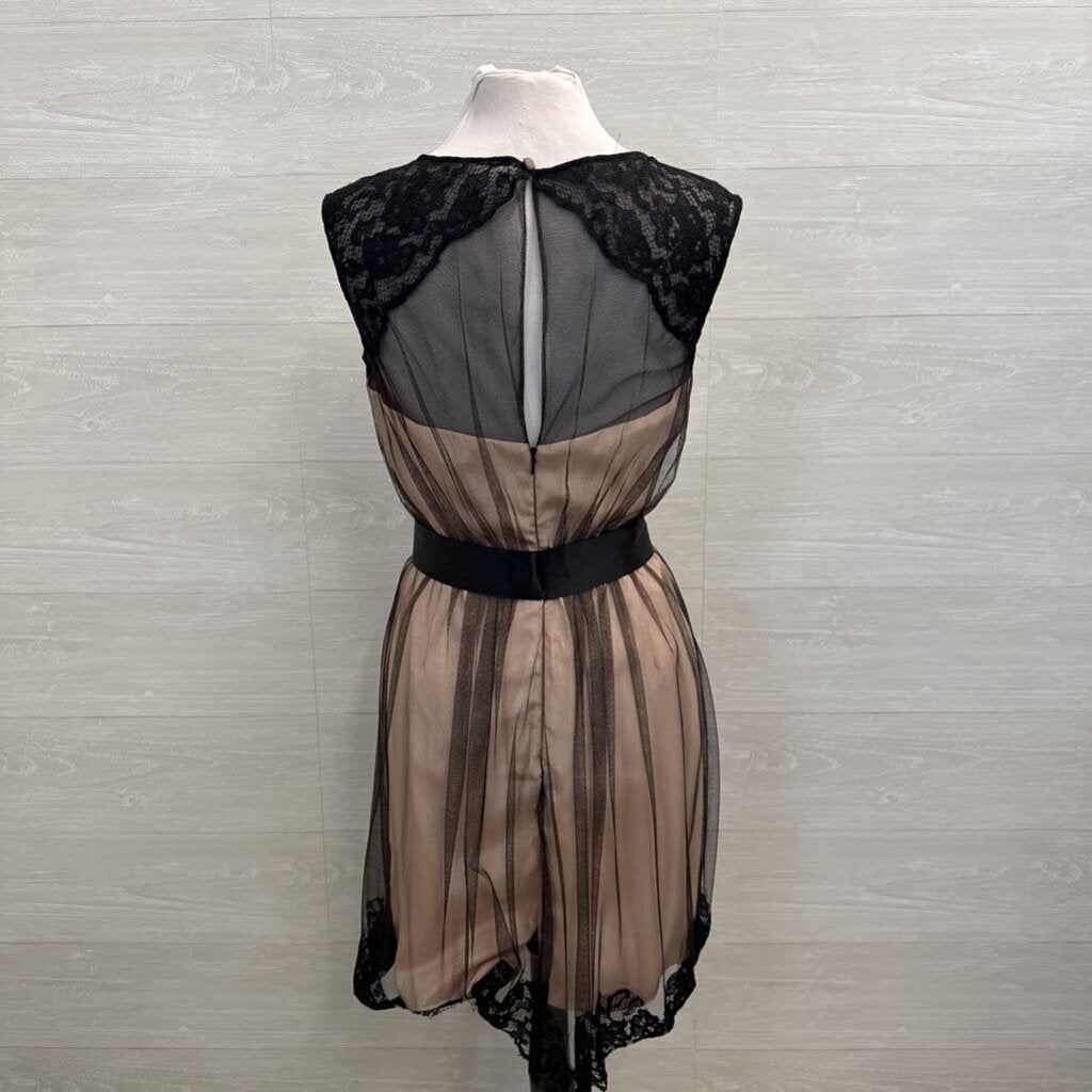 Bari Jay Blush/ Black Lace Mesh Overlay Short Formal Dress 12