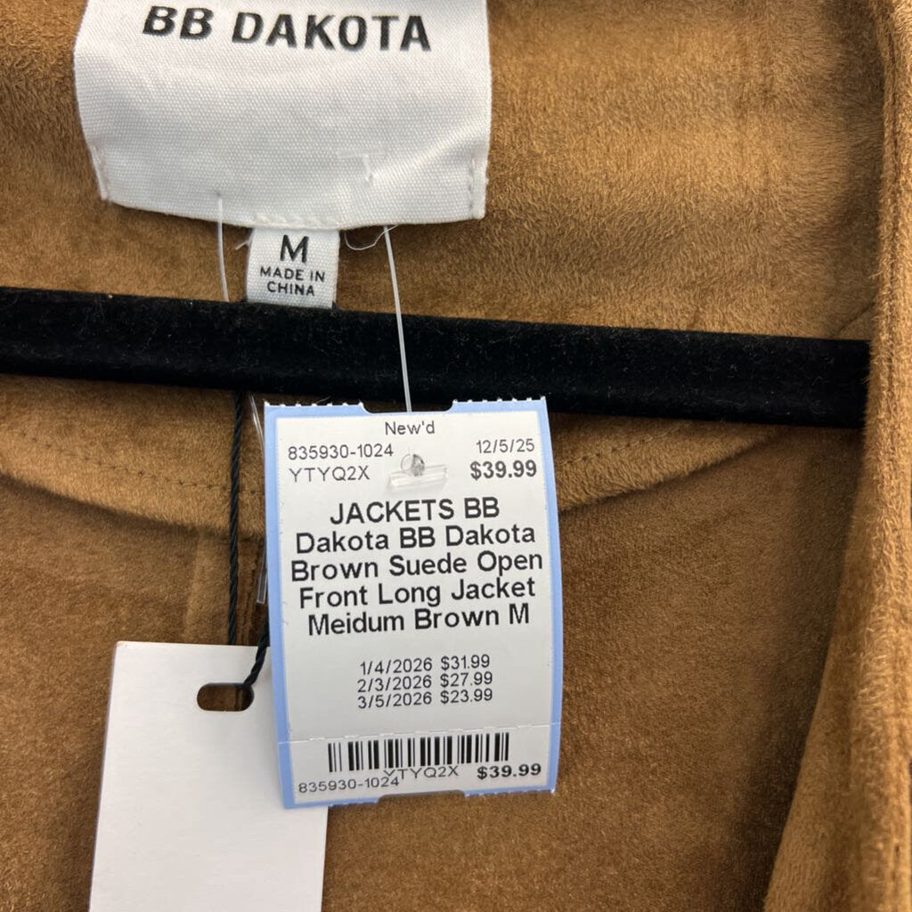 BB Dakota Brown Suede Open Front Long Jacket Meidum