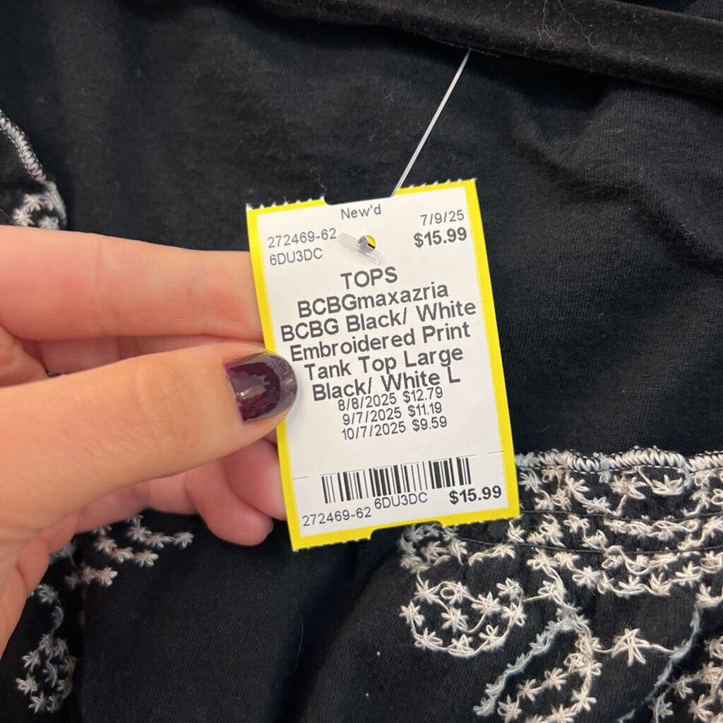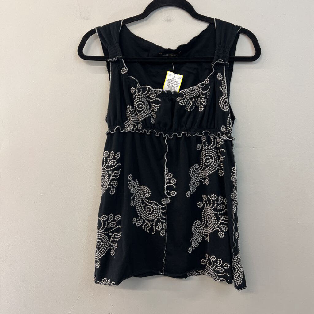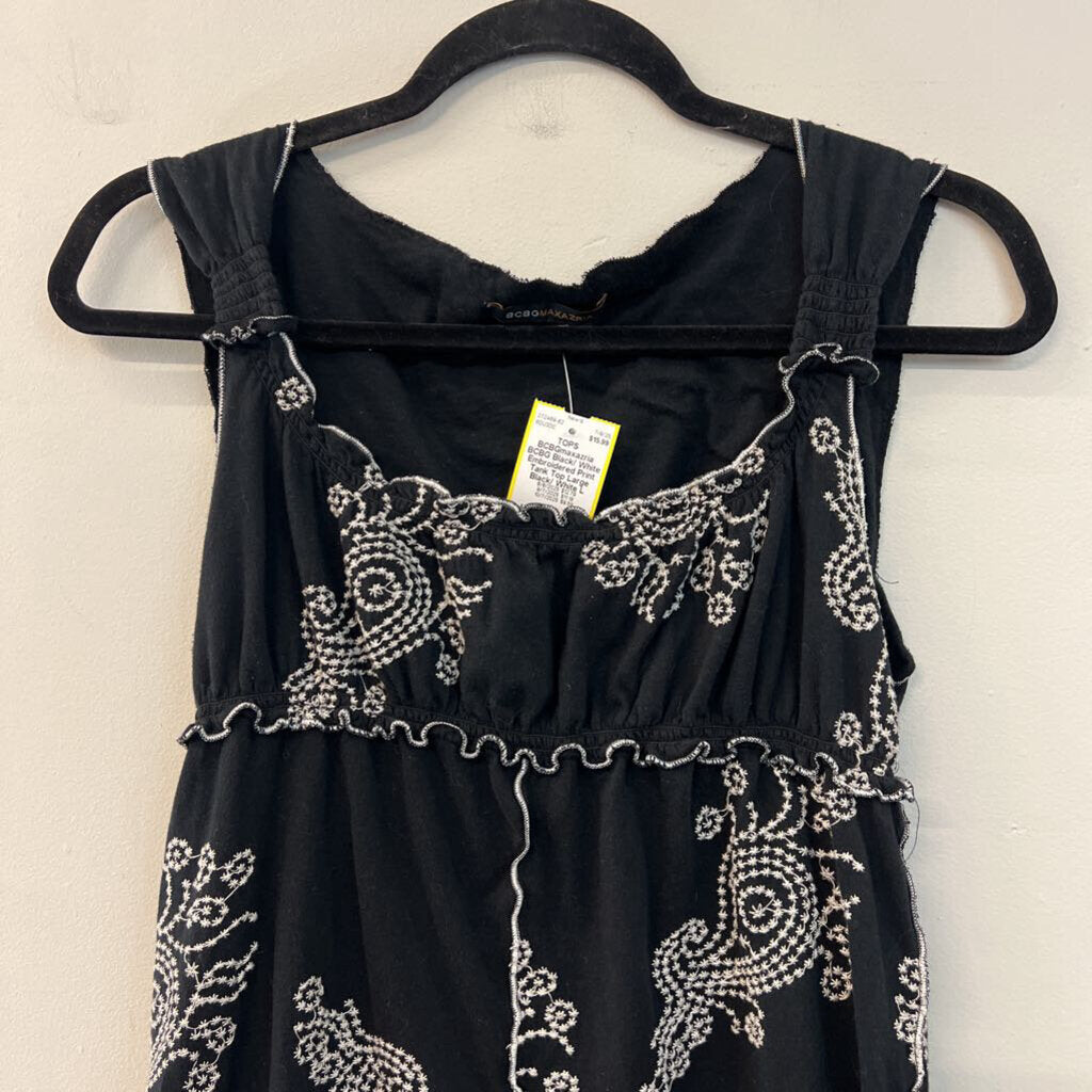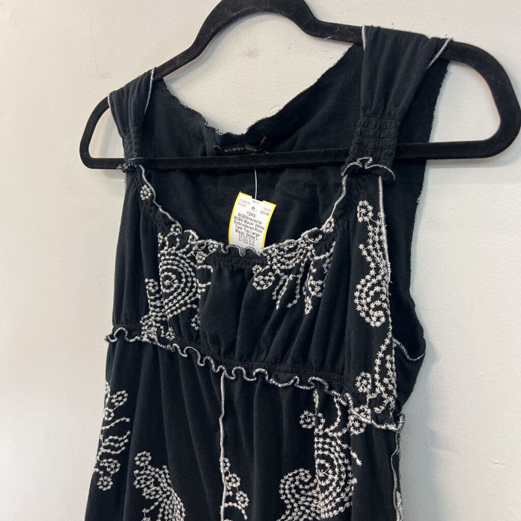 BCBG Black/ White Embroidered Print Tank Top Large