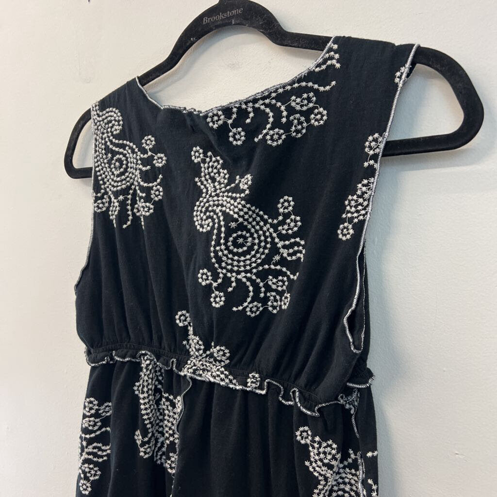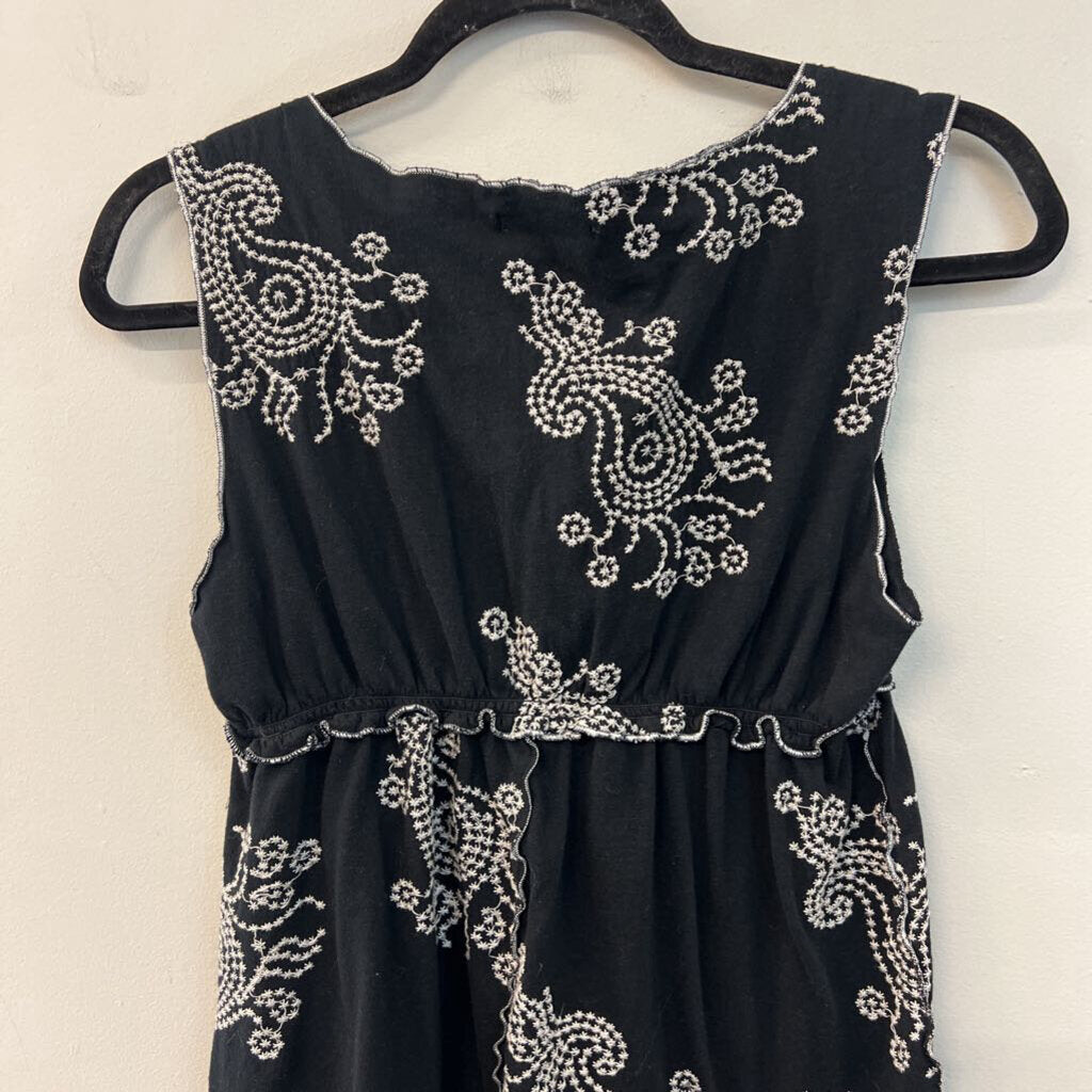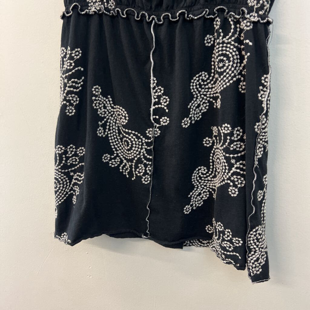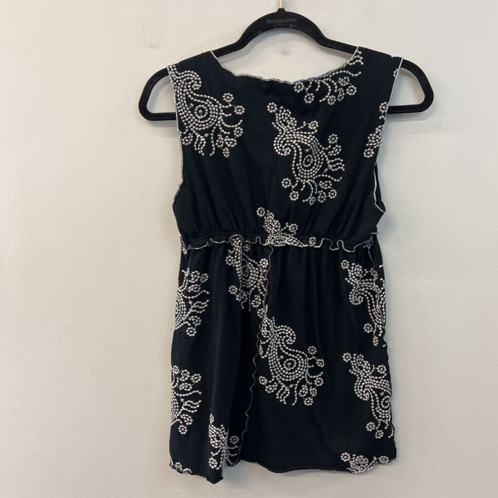 BCBG Black/ White Embroidered Print Tank Top Large