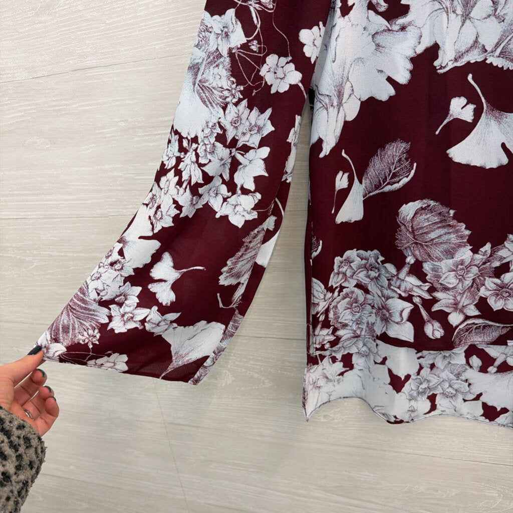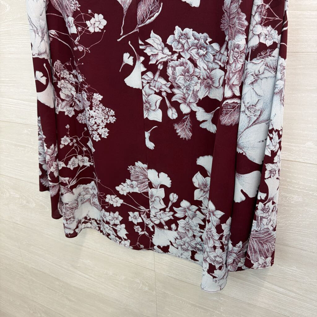 BCBG Burgundy/ Blue Print Long Sleeve Top Medium