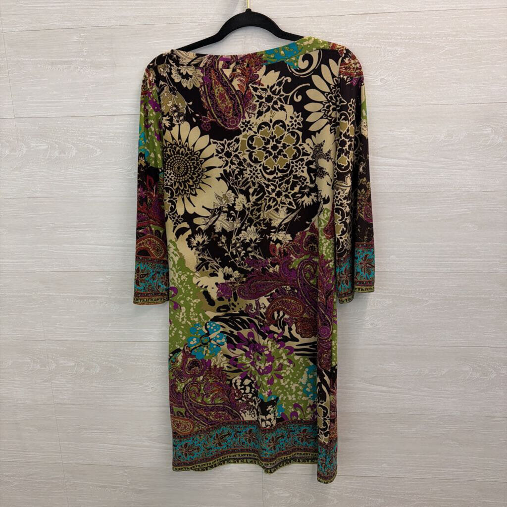 Beige by ECI Purple/ Green Print Long Sleeve Dress 8
