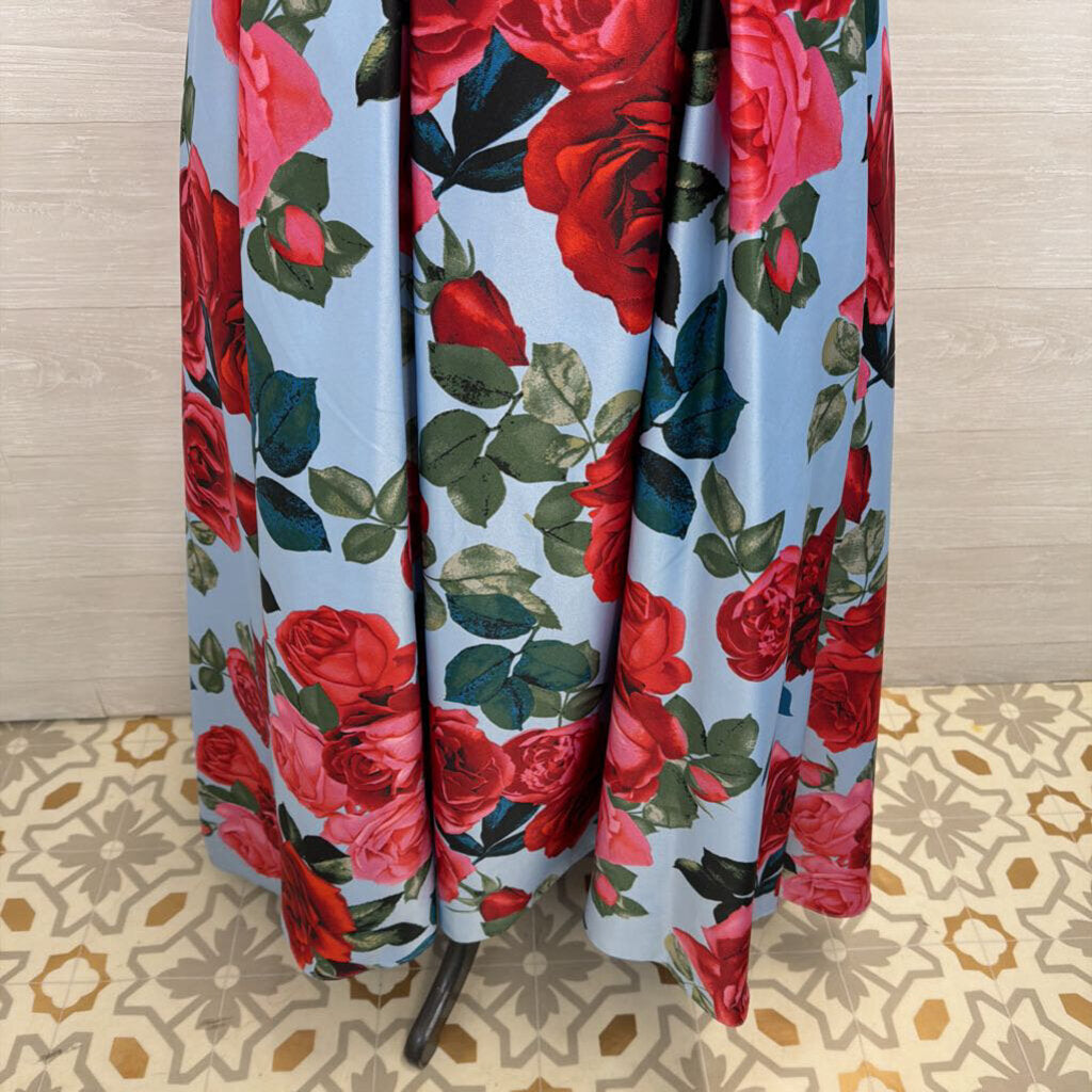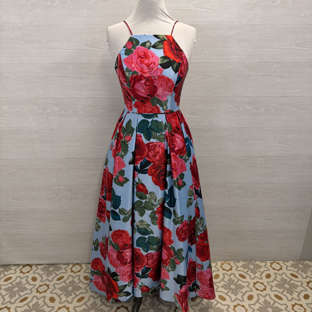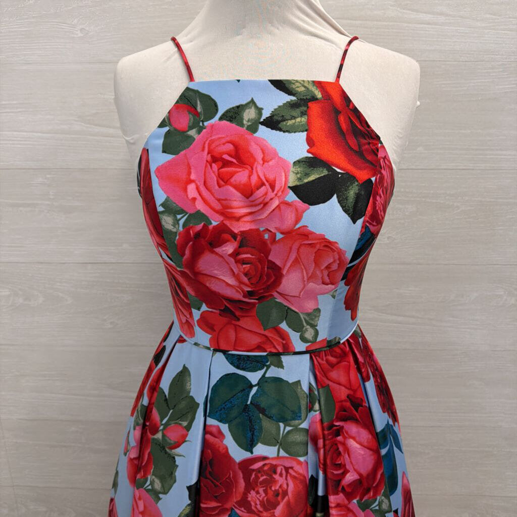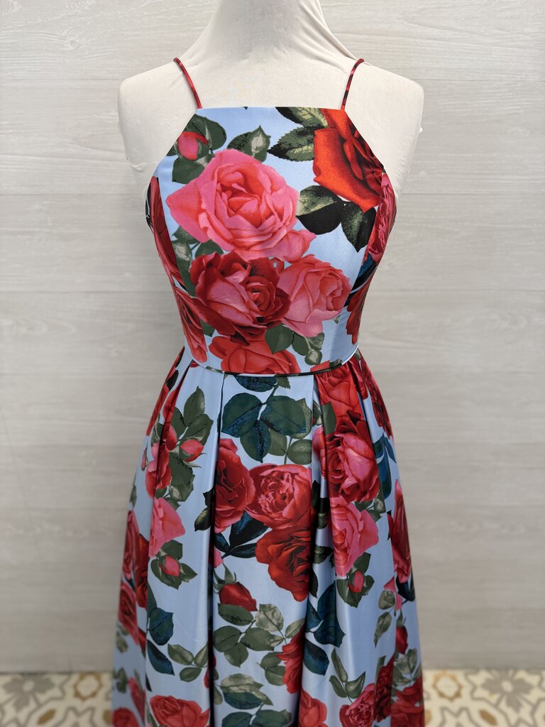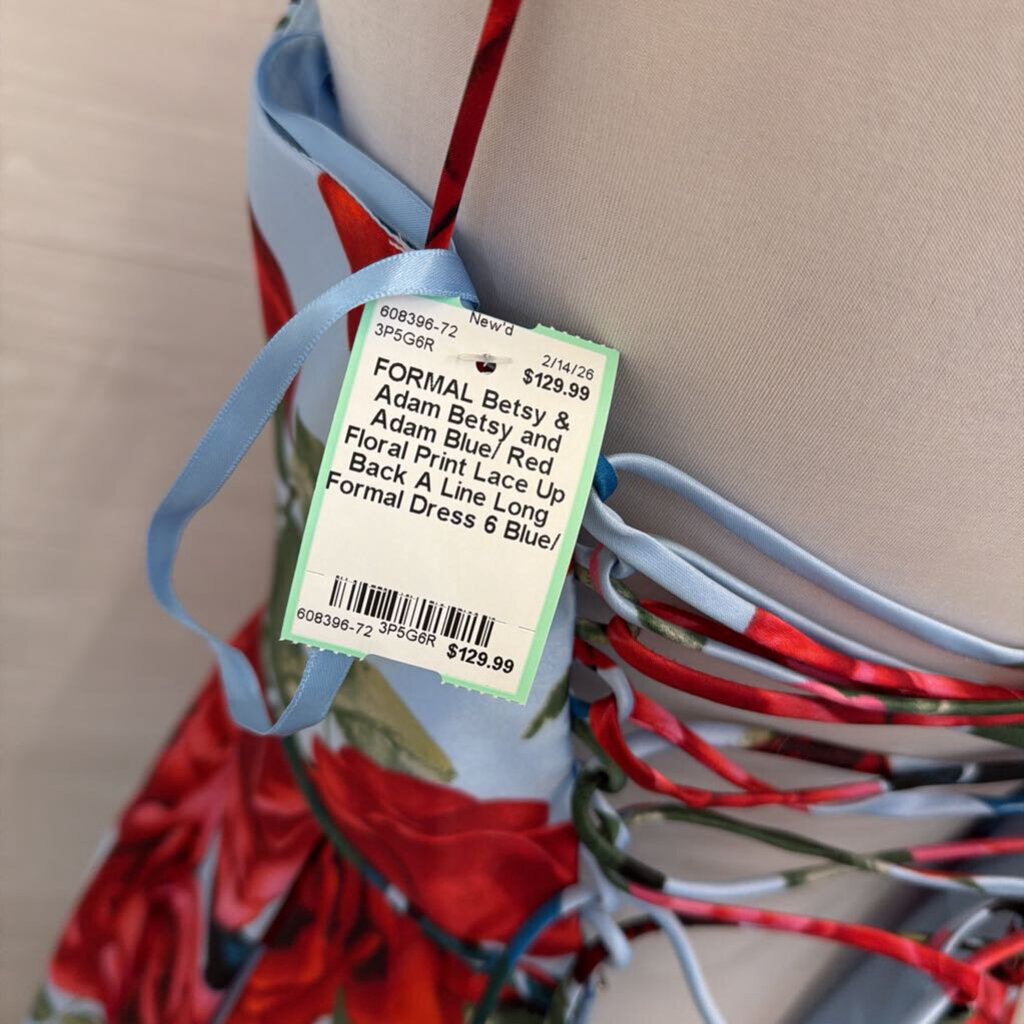 Betsy and Adam Blue/ Red Floral Print Lace Up Back A Line Long Formal Dress 6