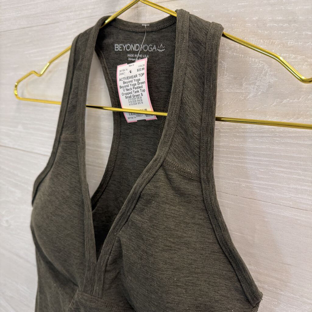 Beyond Yoga Green V Neck Padded Cropped Tank Top Small