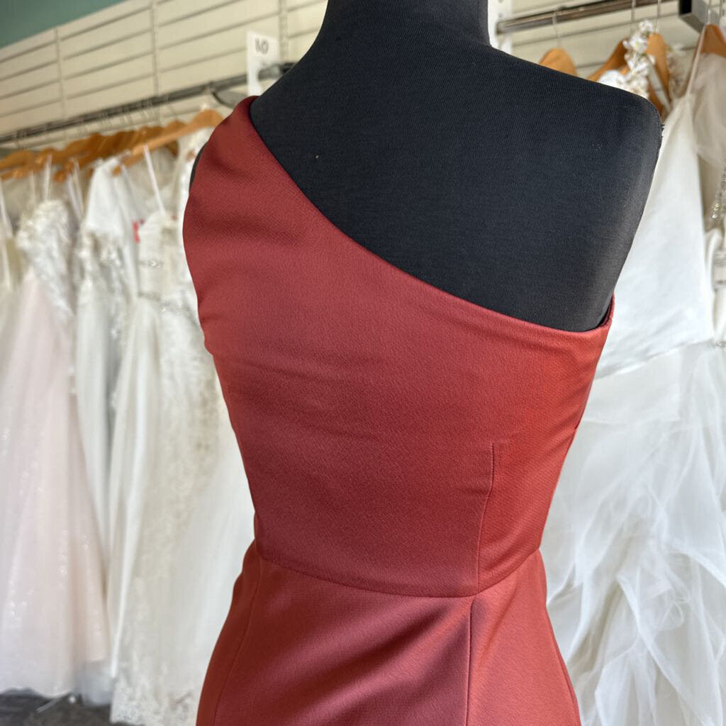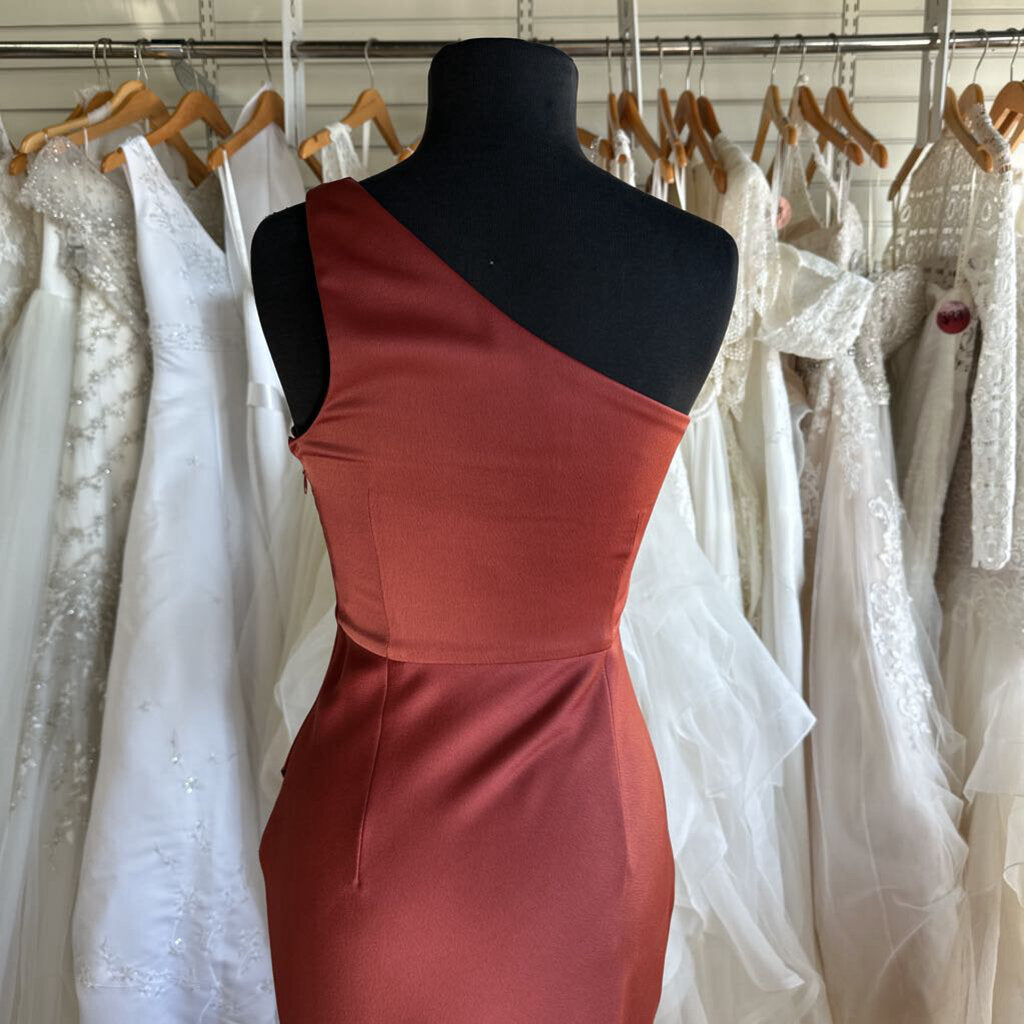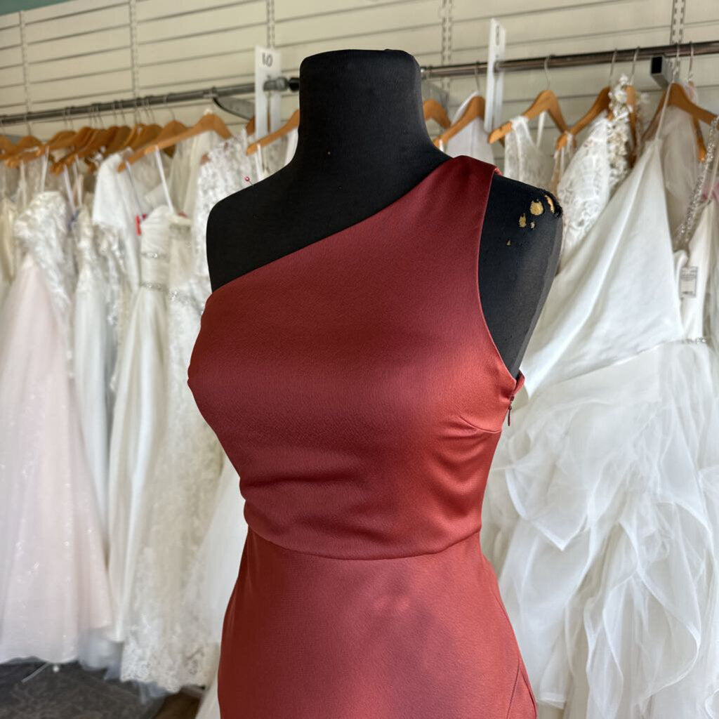 BHLDN Scottie One-Shoulder Stretch Satin Long Dress 0