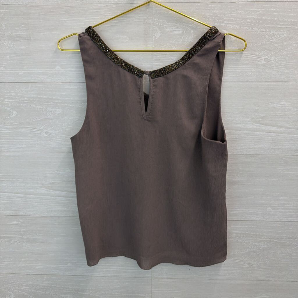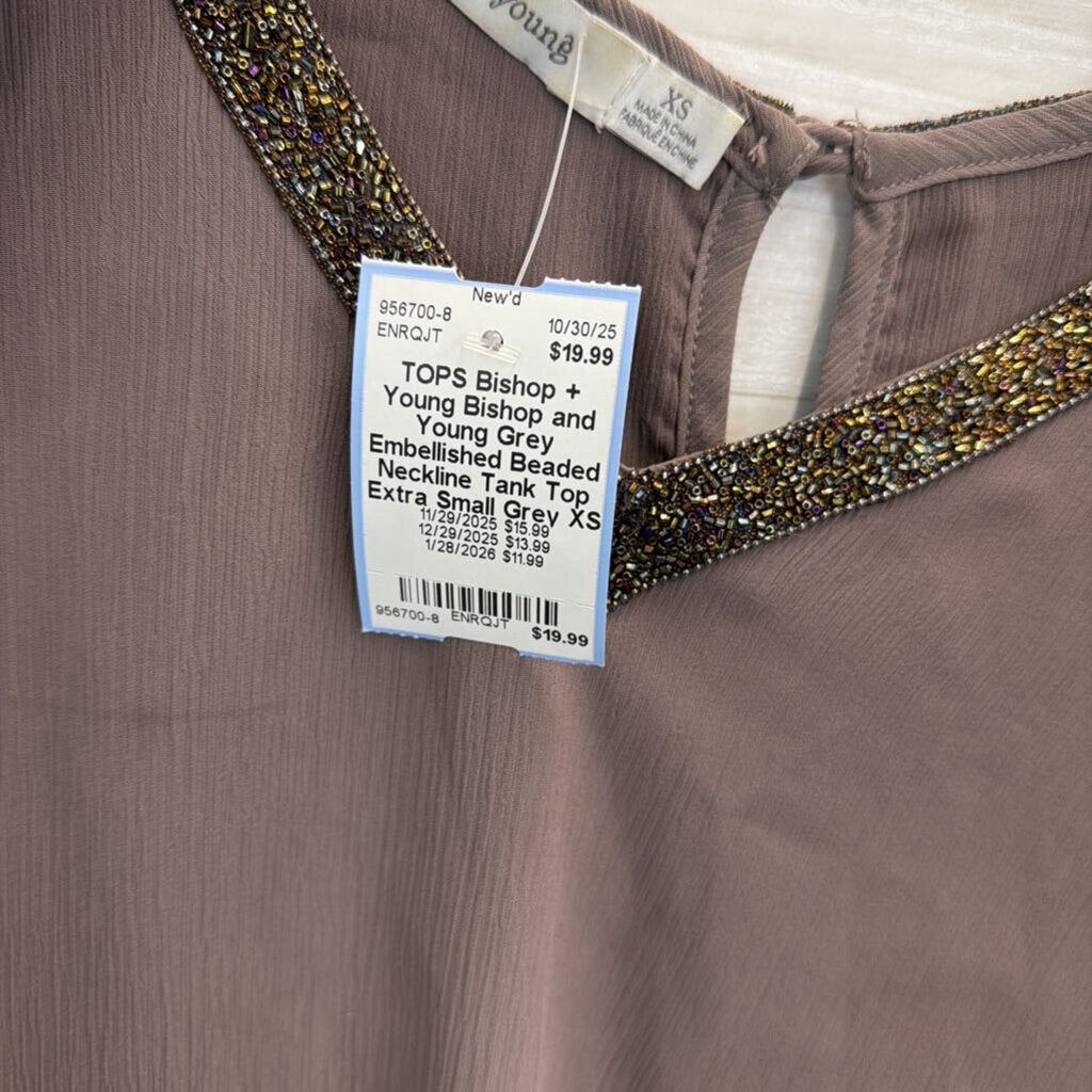 Bishop and Young Grey Embellished Beaded Neckline Tank Top Extra Small