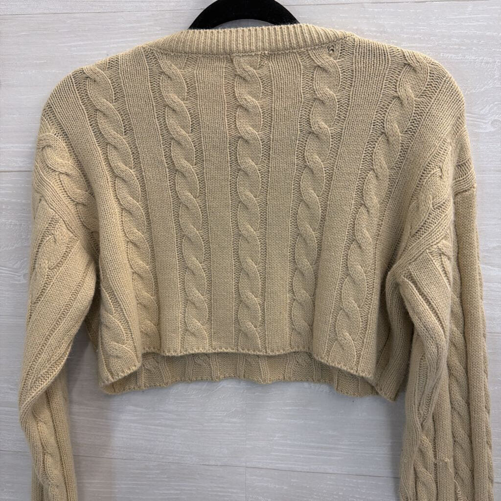 Bittersweet Beige Cropped Cable Knit Sweater Small