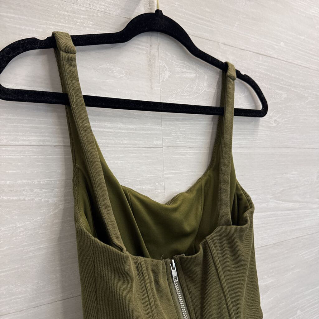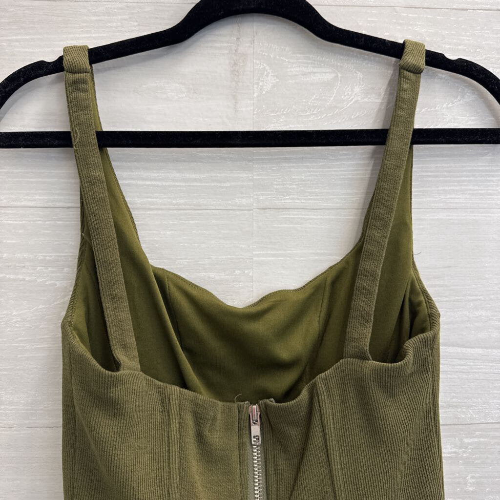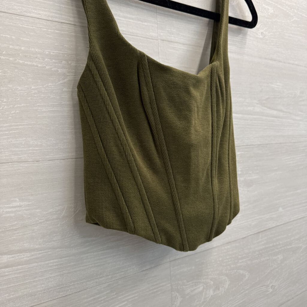 Bittersweet Green Ribbed Cropped Corset Tank Top Small