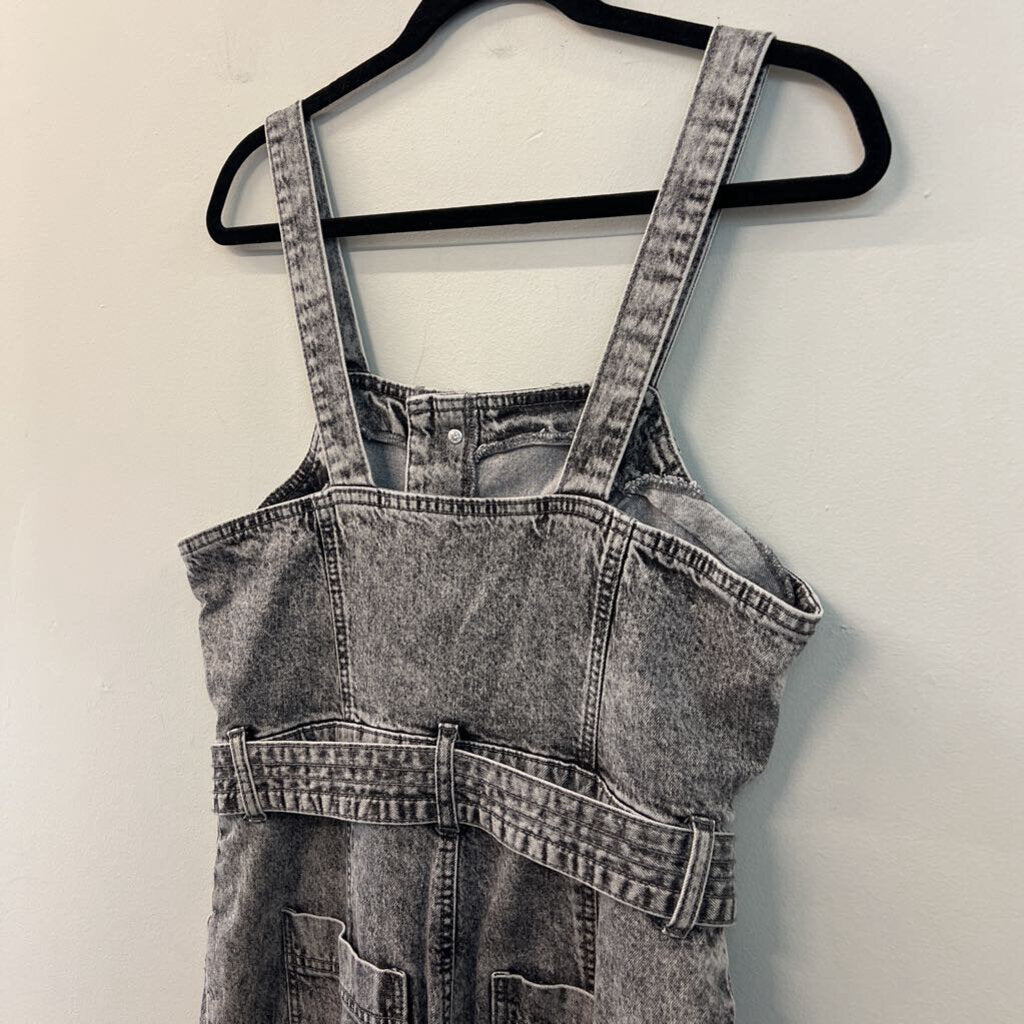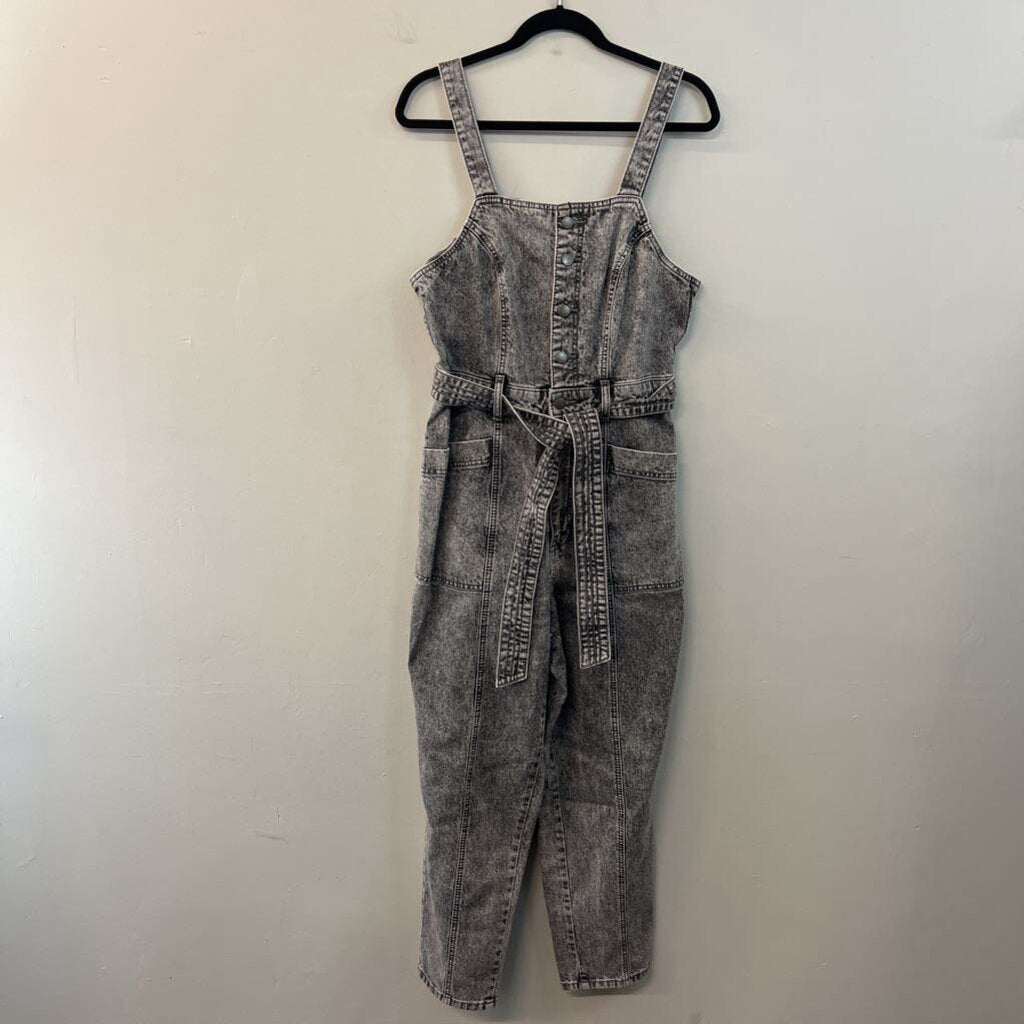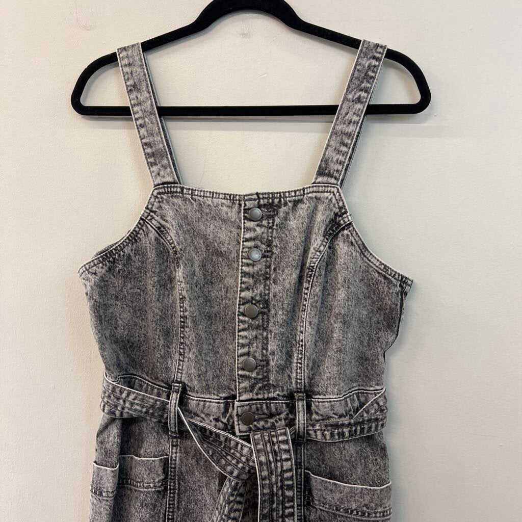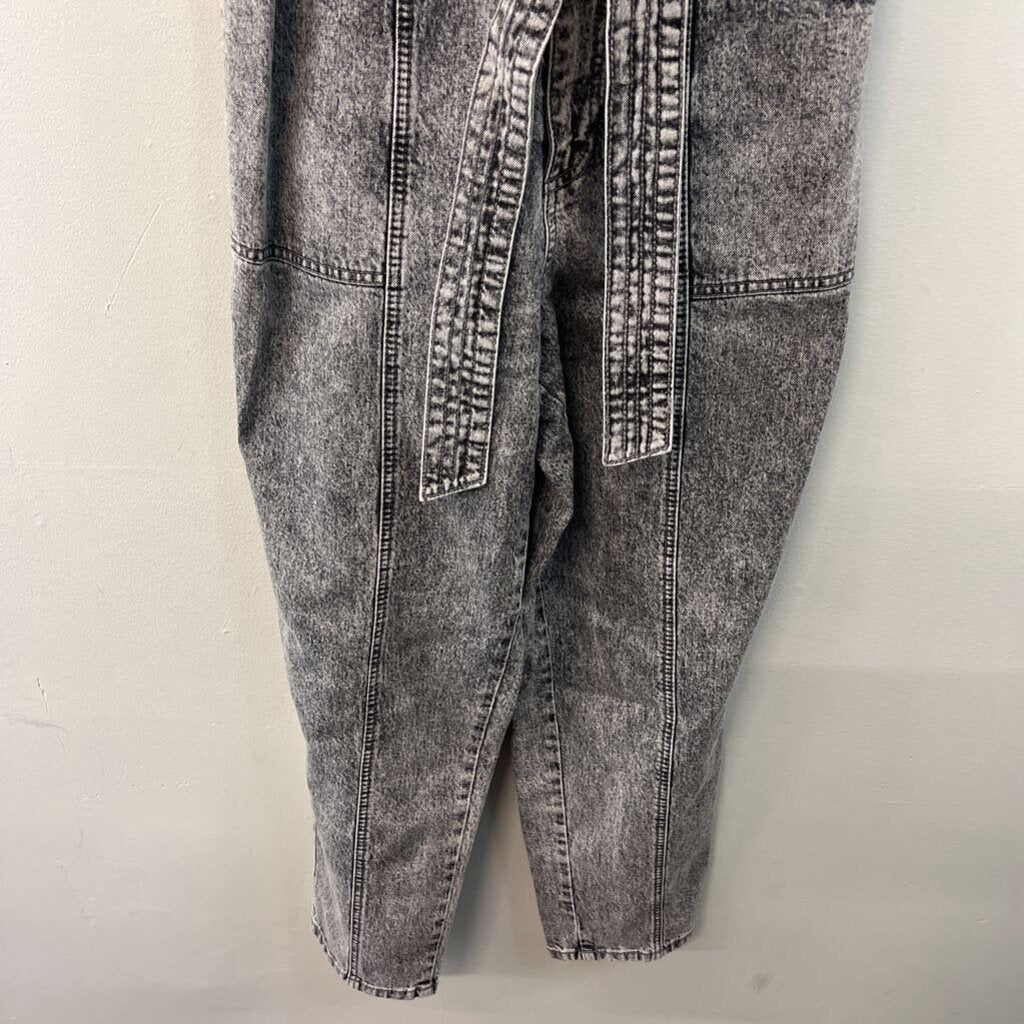 Black Acid Wash Denim Tie Waist Overalls 10
