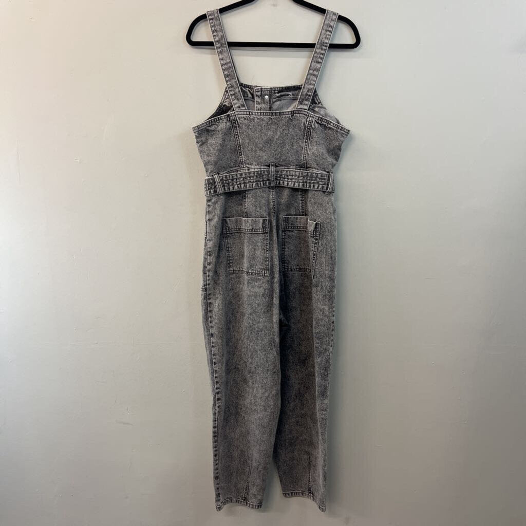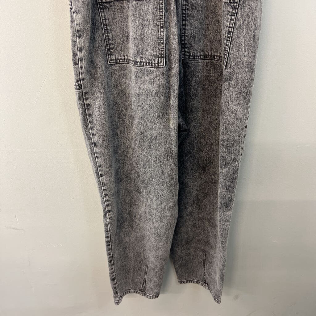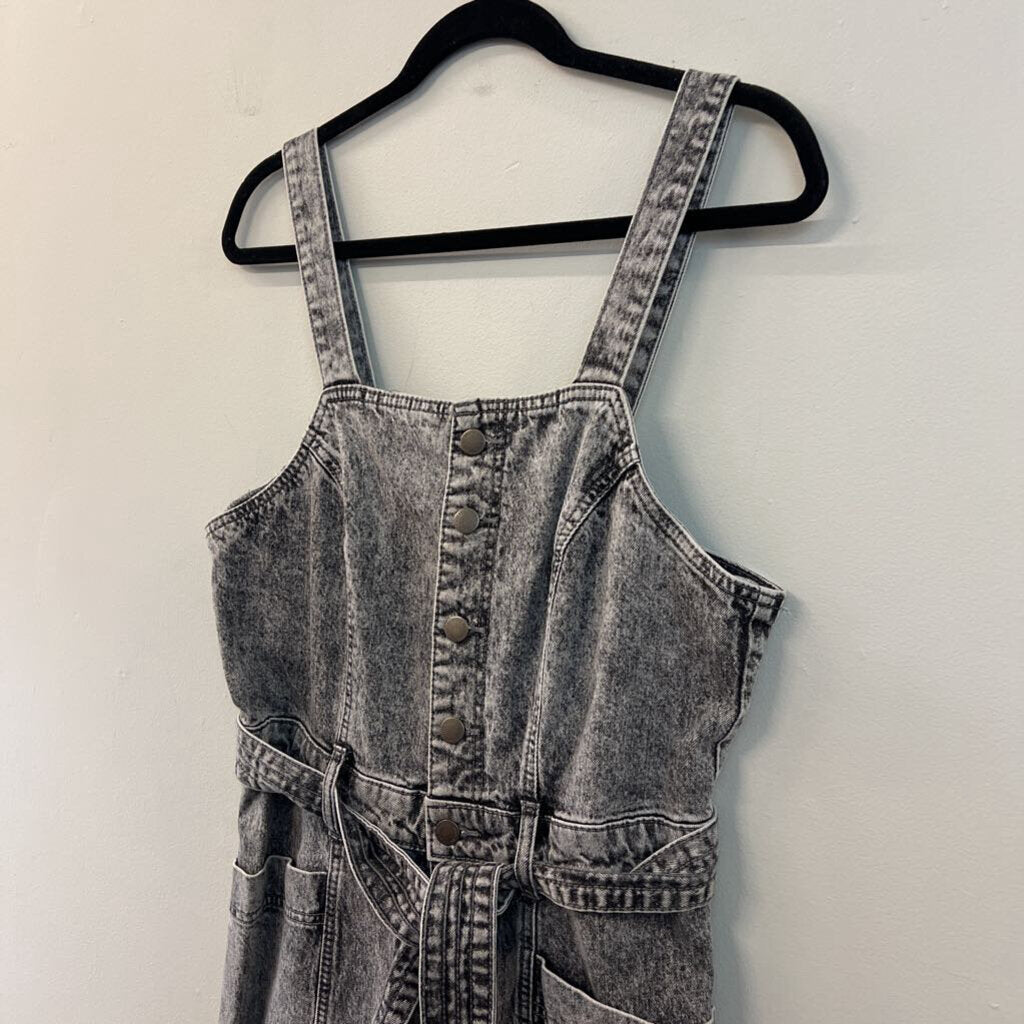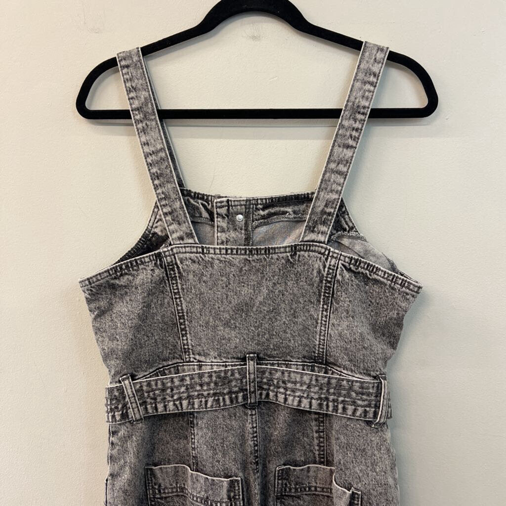 Black Acid Wash Denim Tie Waist Overalls 10