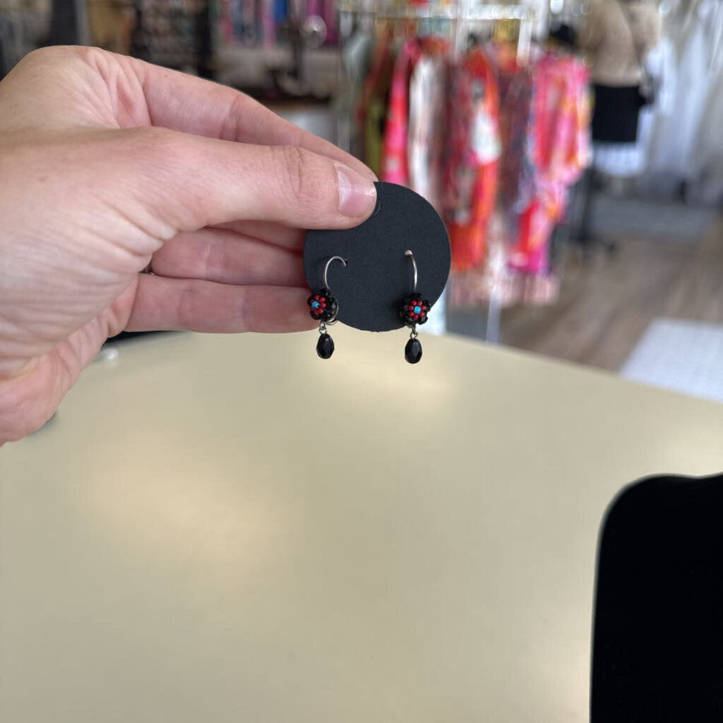 Black Beaded Flower Earrings