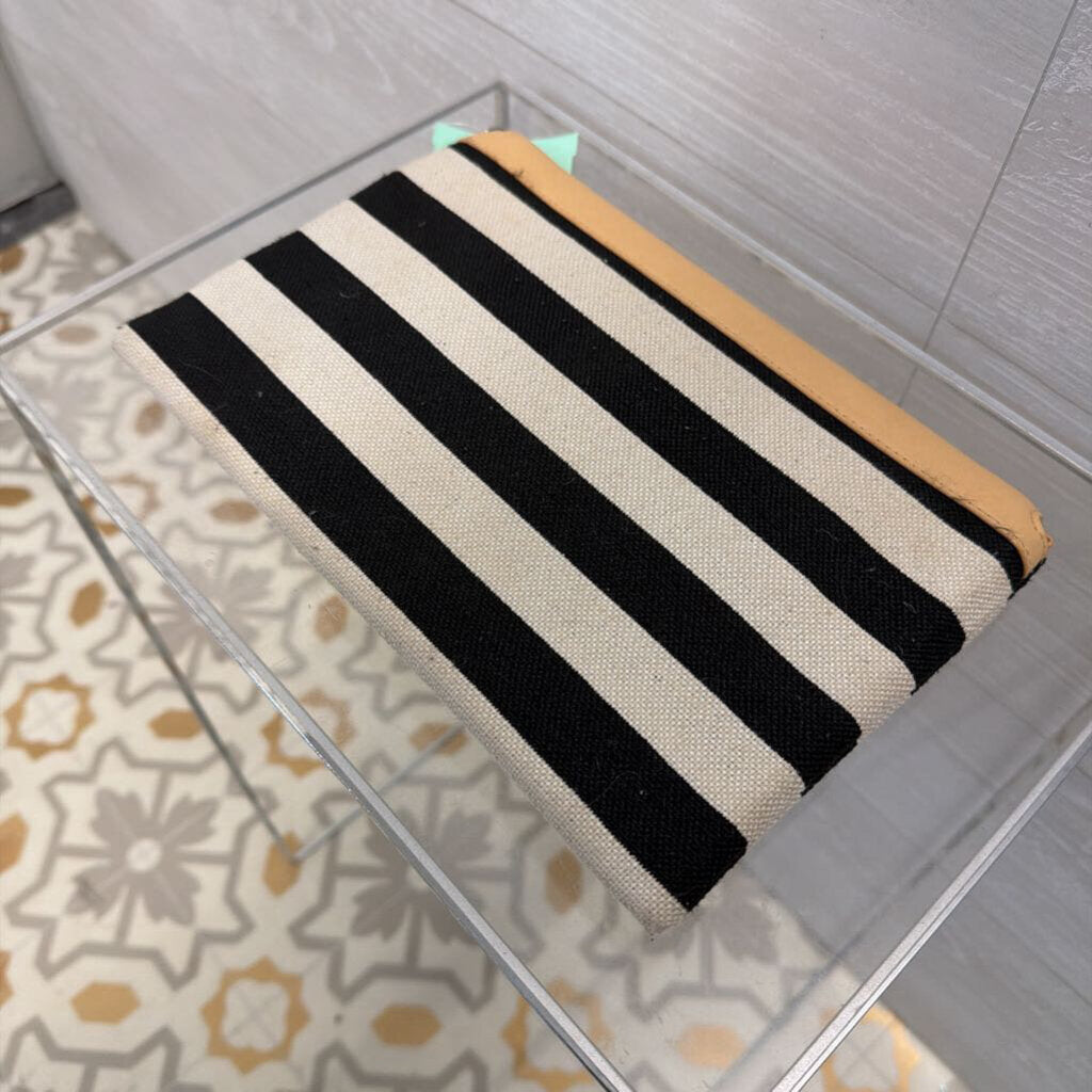 Black/ Beige Striped Canvas/ Brown Leather Clutch Purse