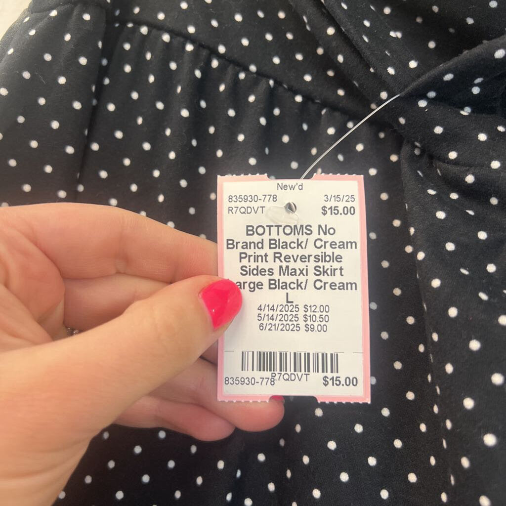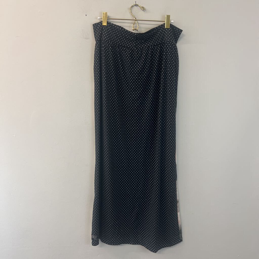 Black/ Cream Print Reversible Sides Maxi Skirt Large