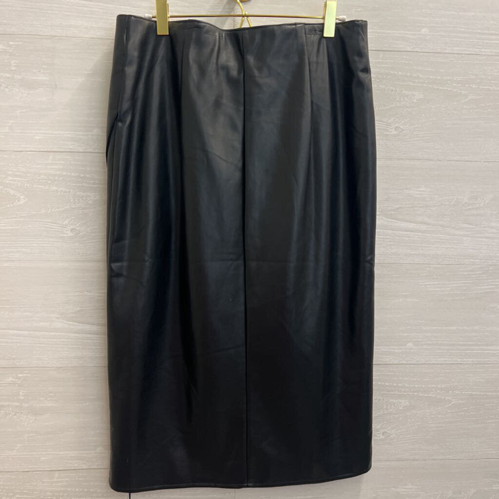 Black Faux Leather Black Midi Skirt Medium