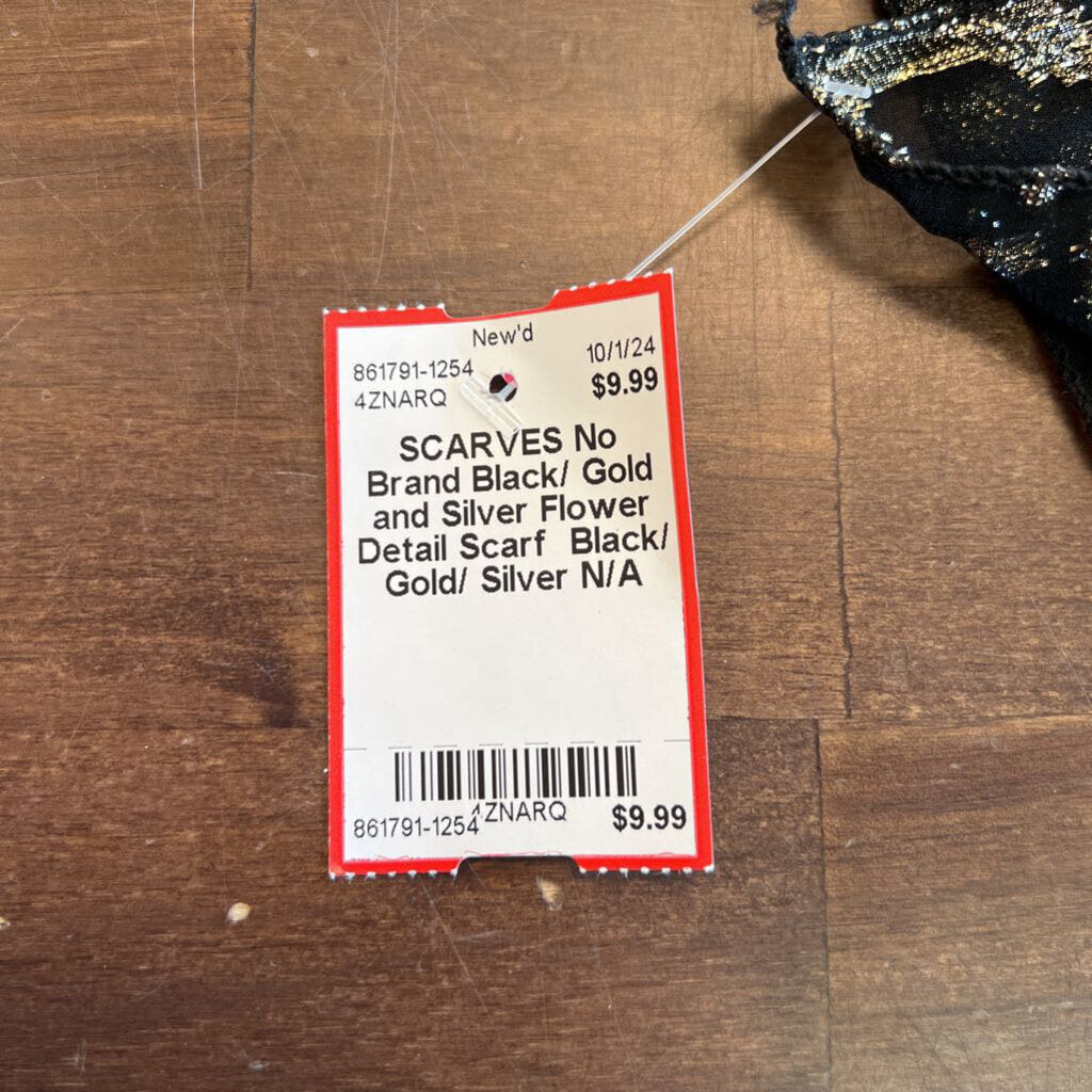 Black/ Gold and Silver Flower Detail Scarf