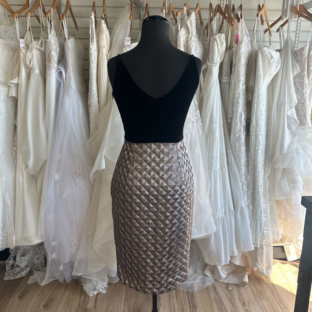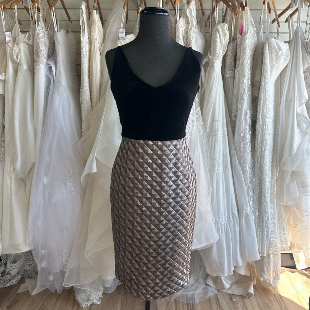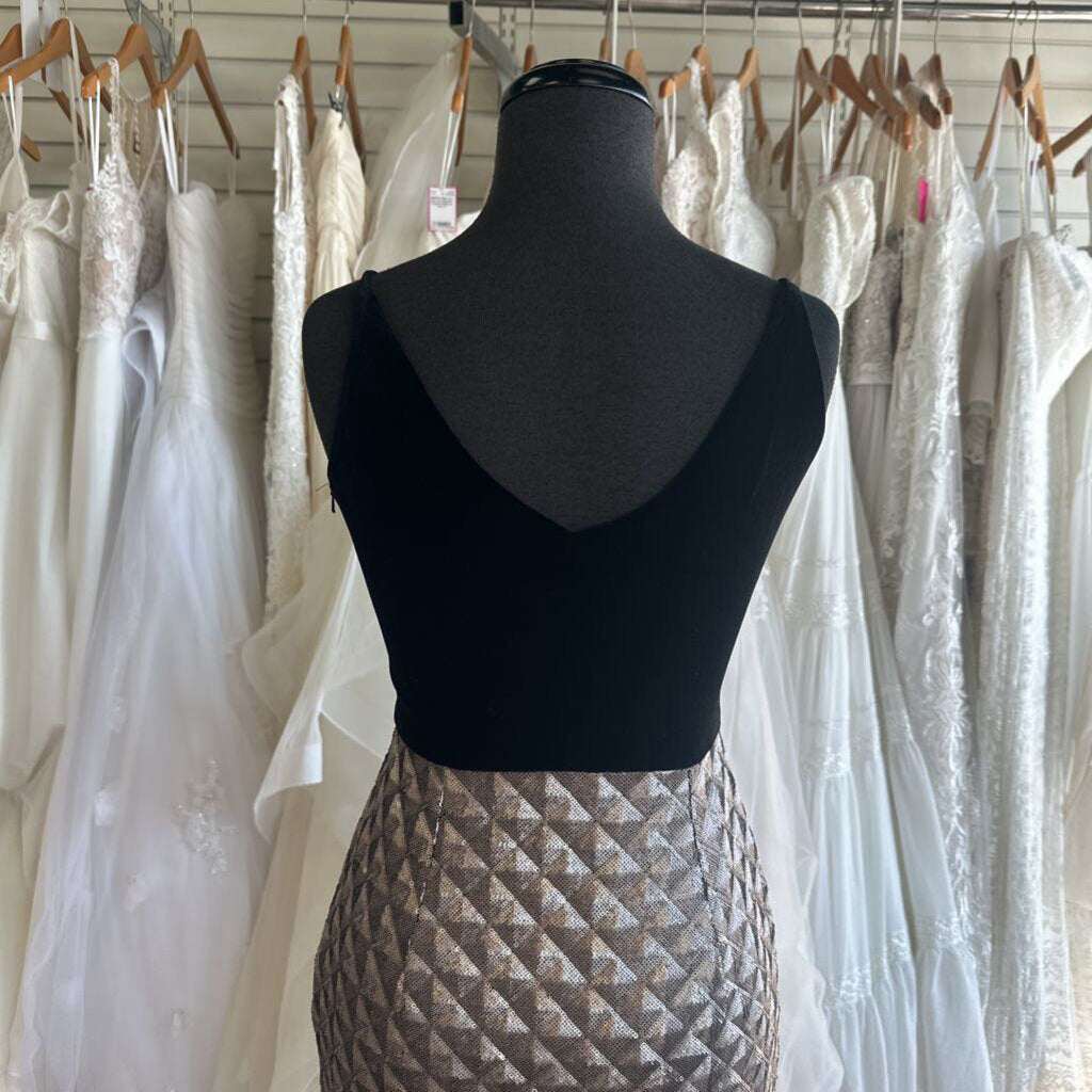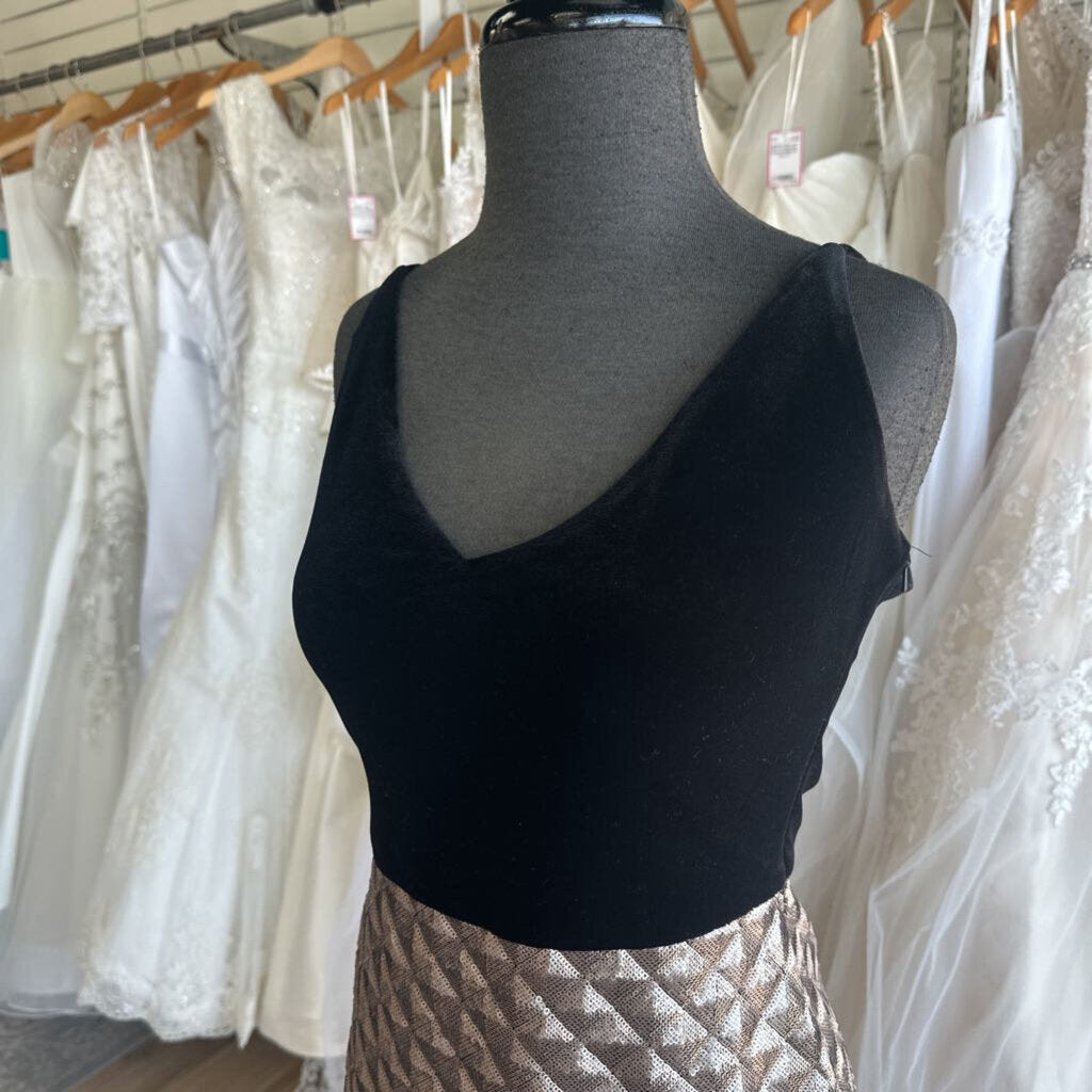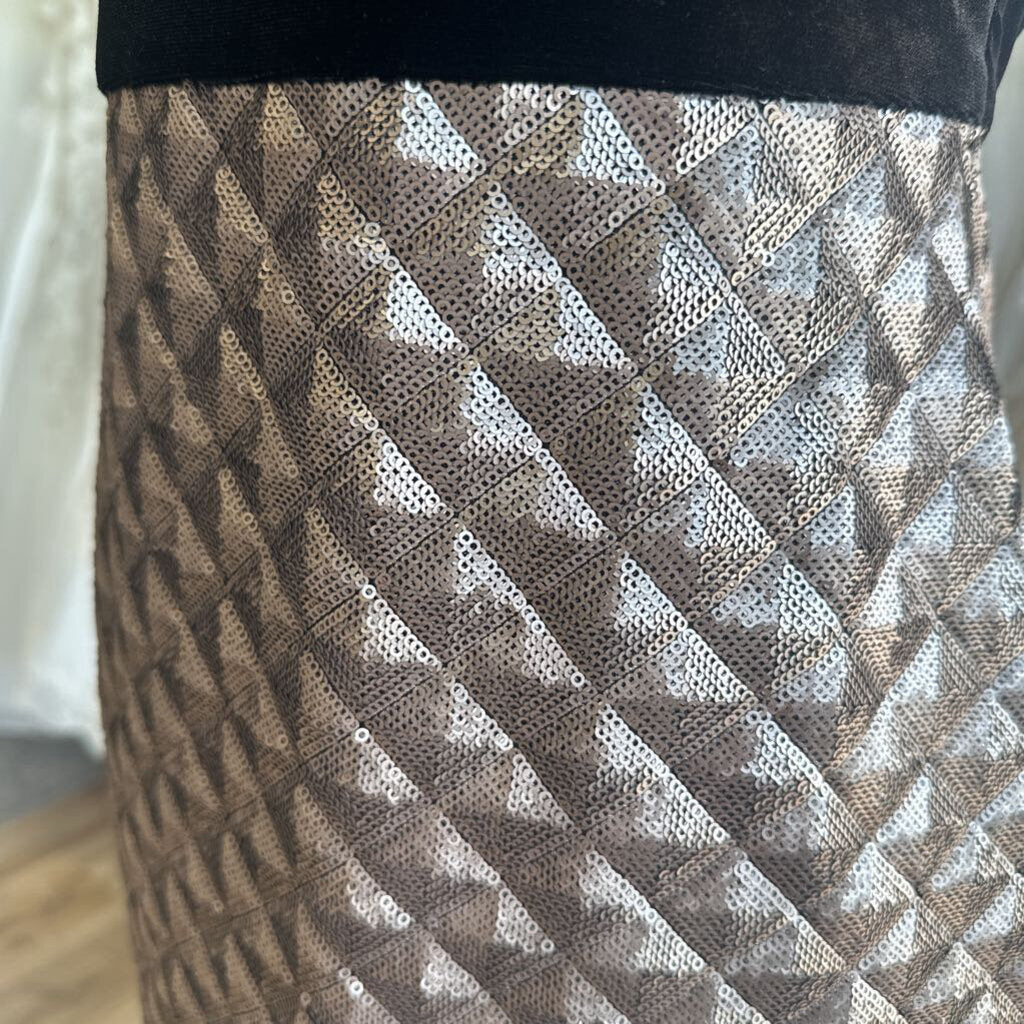 Black Halo Black Velvet Top Gunmetal Sequin Skirt Midi Dress 2