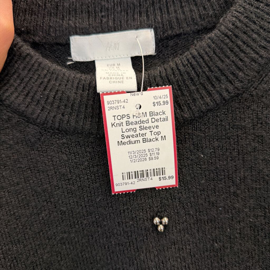 Black Knit Beaded Detail Long Sleeve Sweater Top Medium