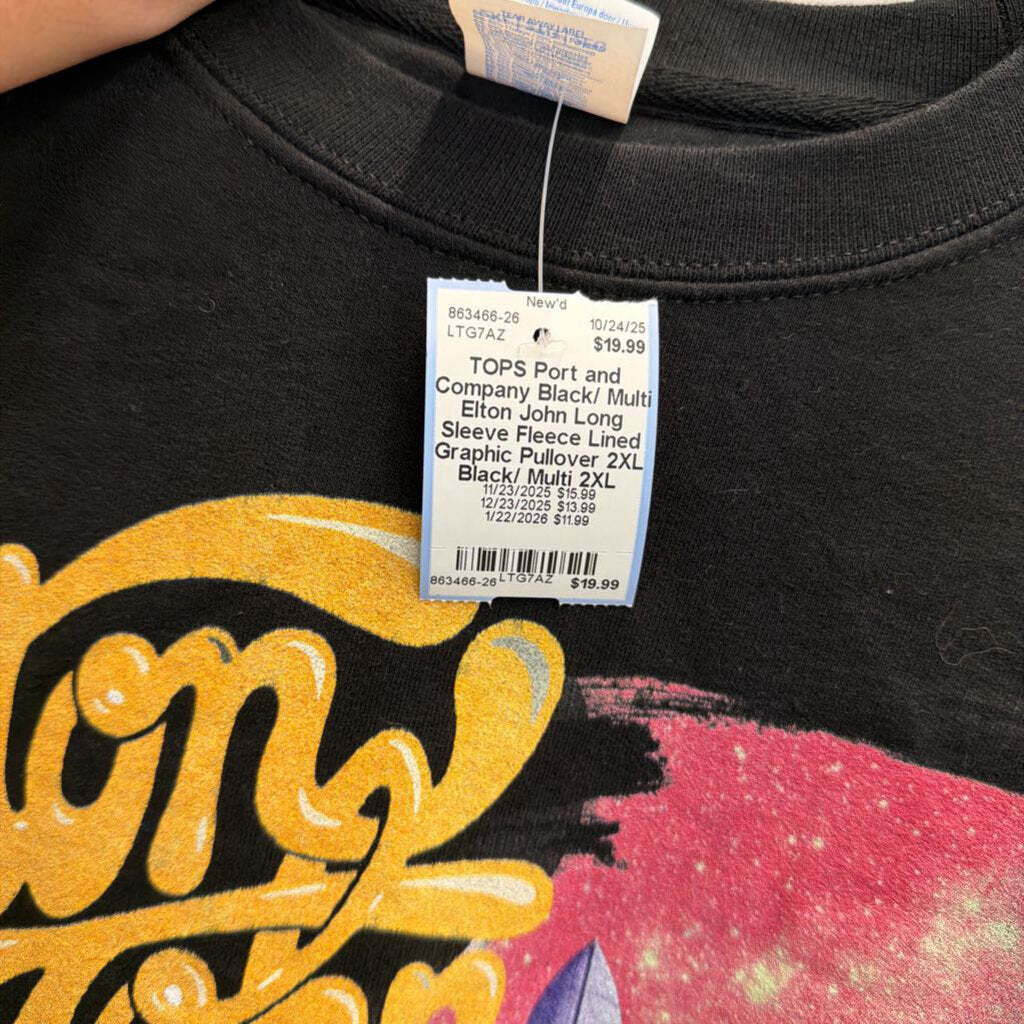 Black/ Multi Elton John Long Sleeve Fleece Lined Graphic Pullover 2XL