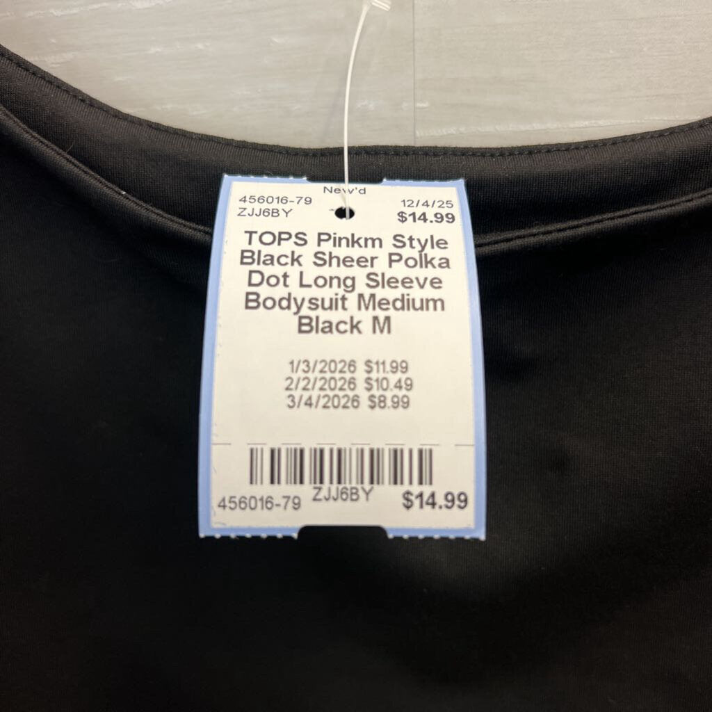 Black Sheer Polka Dot Long Sleeve Bodysuit Medium