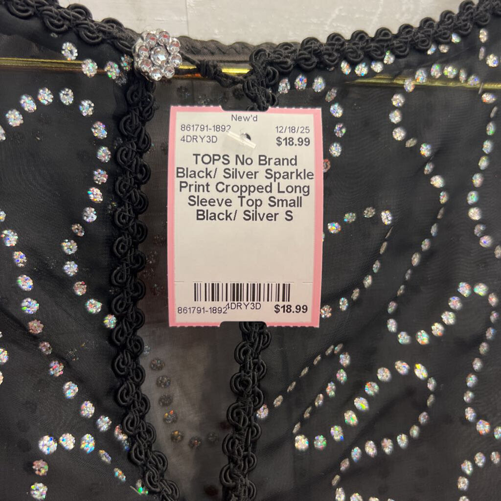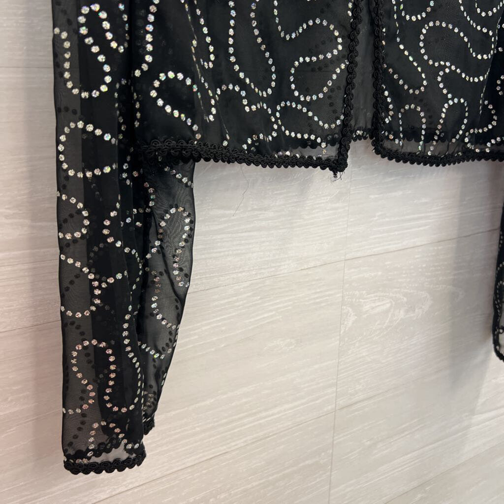 Black/ Silver Sparkle Print Cropped Long Sleeve Top Small