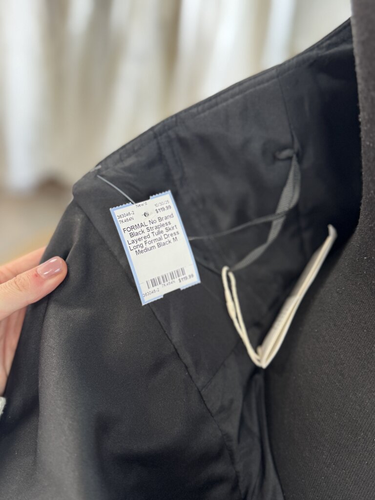 Black Strapless Layered Tulle Skirt Long Formal Dress Medium