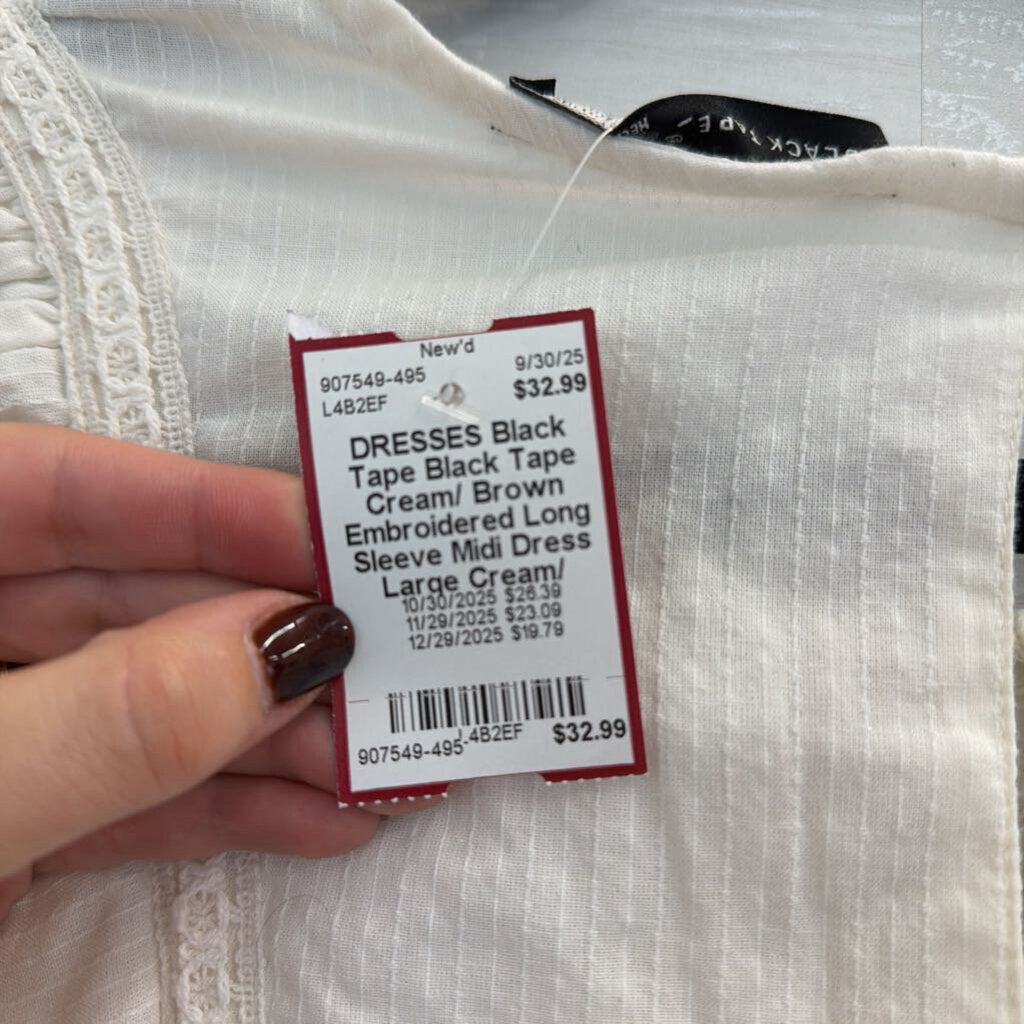 Black Tape Cream/ Brown Embroidered Long Sleeve Midi Dress Large