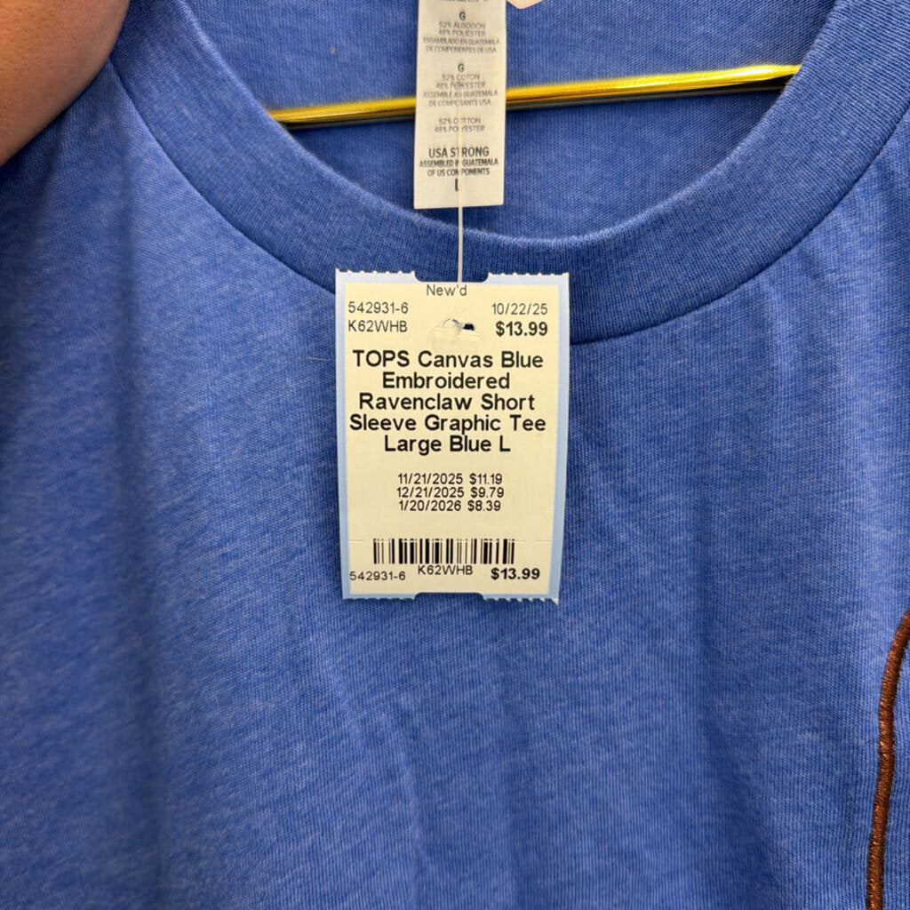 Blue Embroidered Ravenclaw Short Sleeve Graphic Tee Large