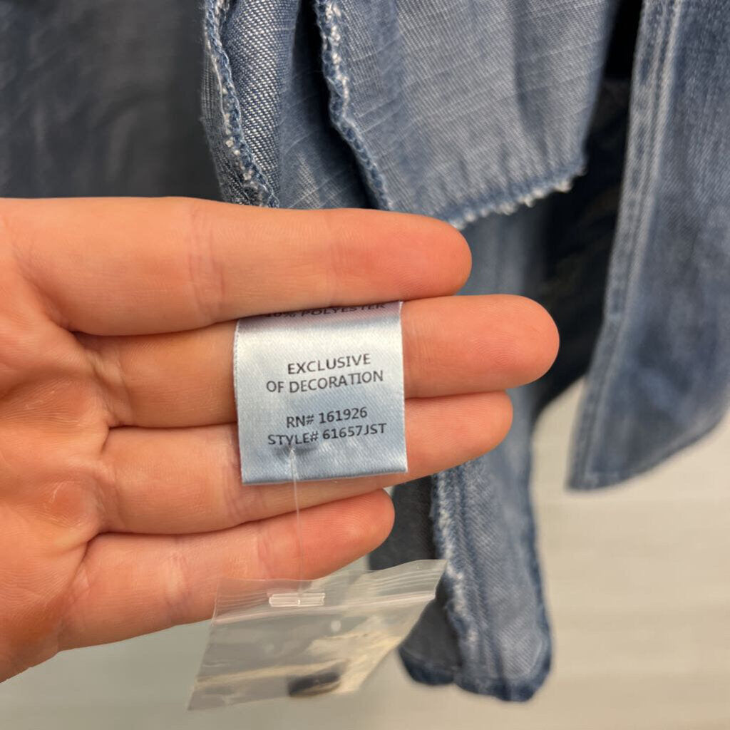 Blue Velvet Blue Chambray/ Multi Color Embroidered Long Sleeve Kimono Top Large