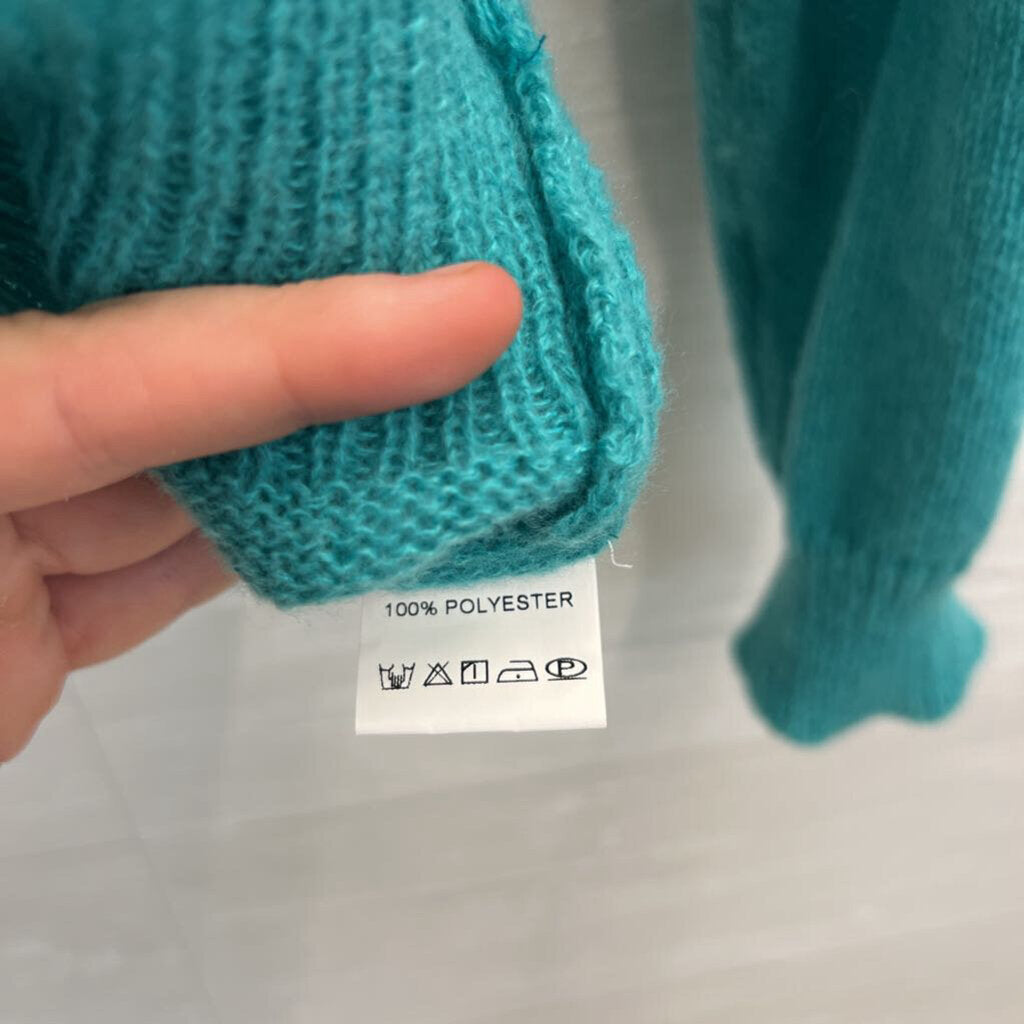 Blue/ White 3D Flower Cardigan Sweater Medium