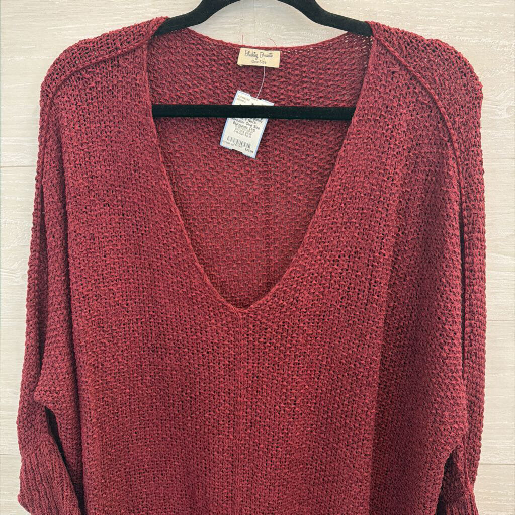 Blushing Brunette Burgundy Knit V Neck Sweater One Size