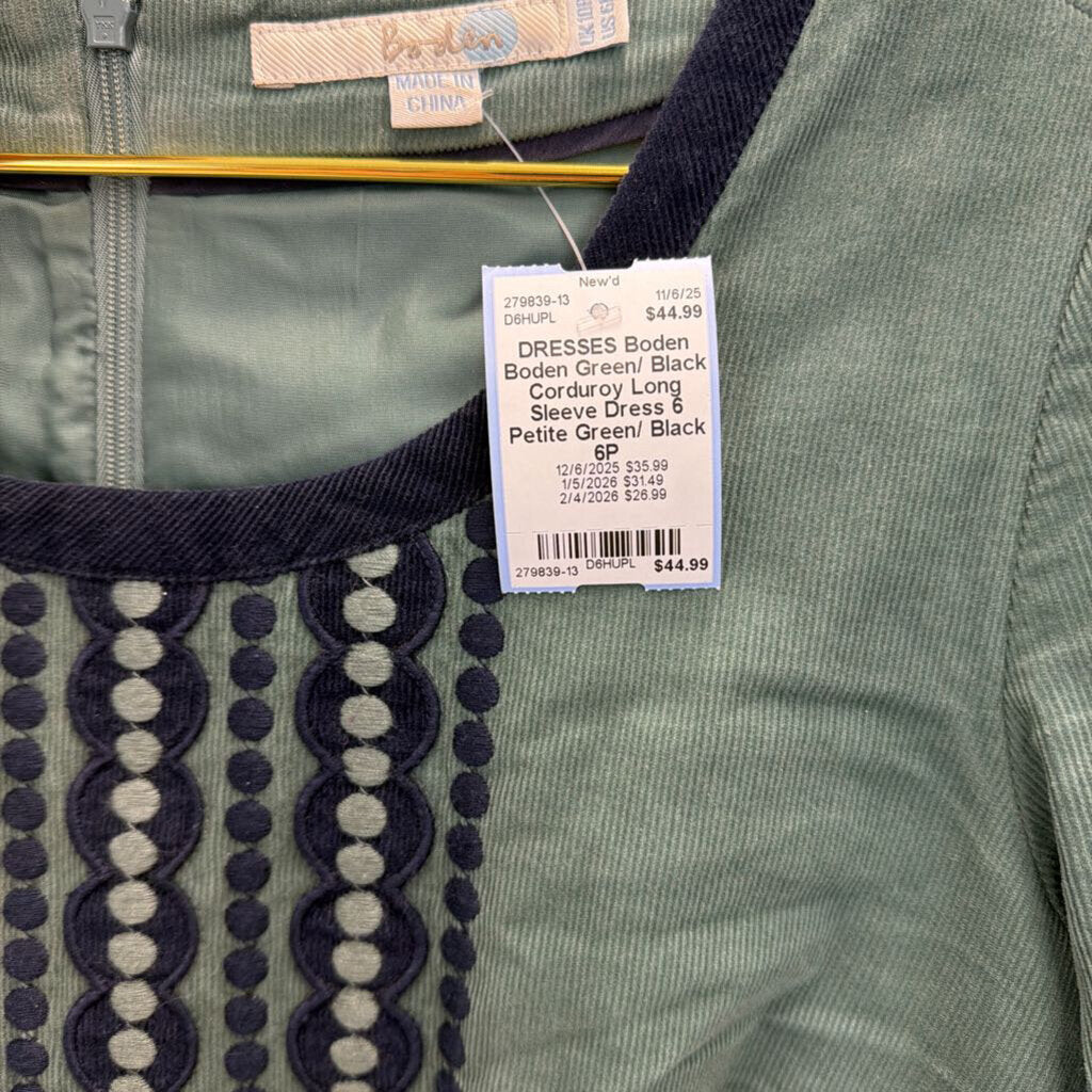 Boden Green/ Black Corduroy Long Sleeve Dress 6 Petite