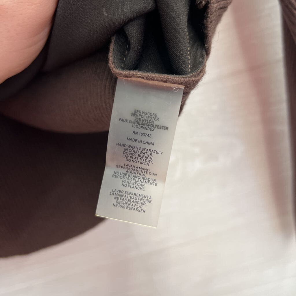 Brown Ribbed Long Sleeve Suede Front Top Medium