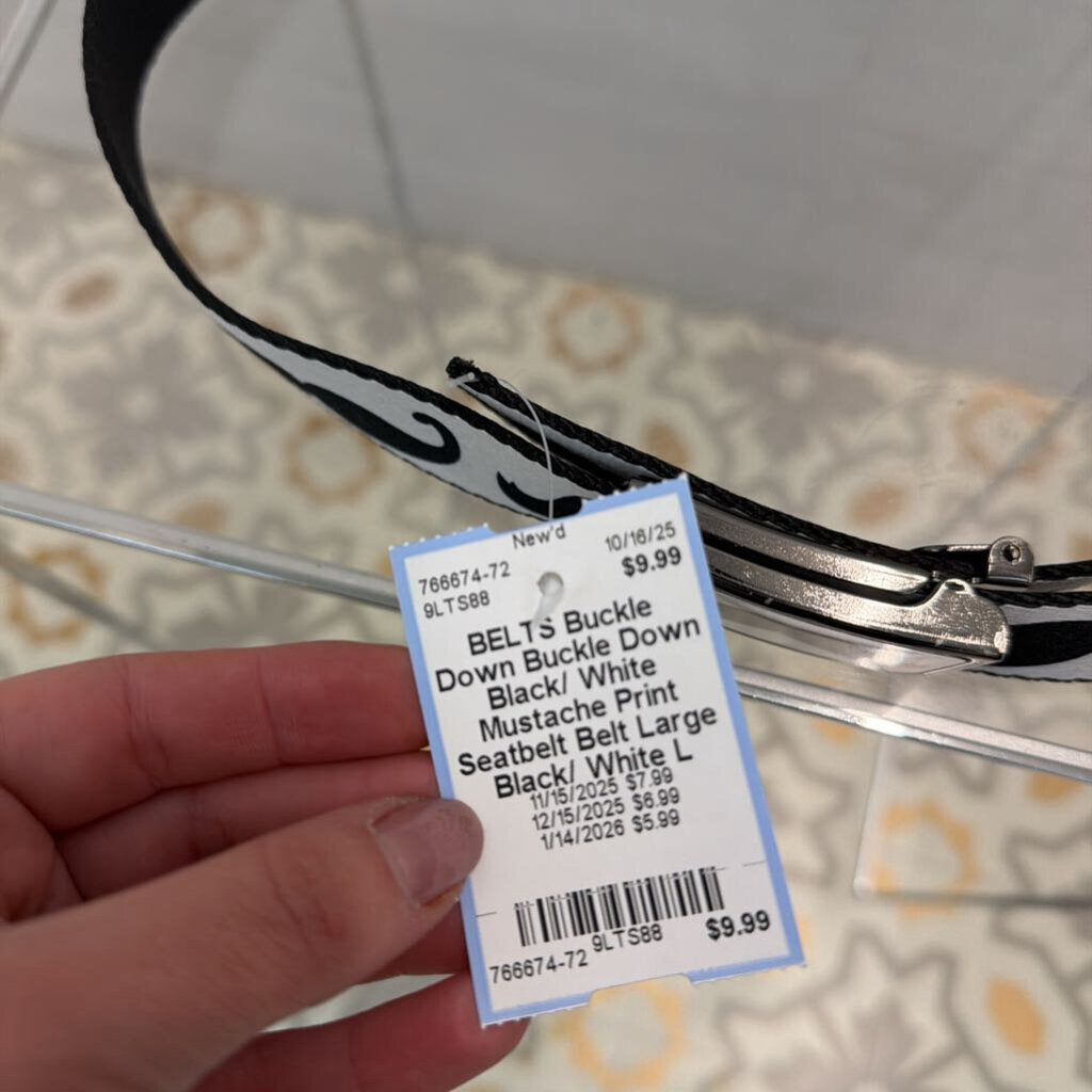 Buckle Down Black/ White Mustache Print Seatbelt Belt Large