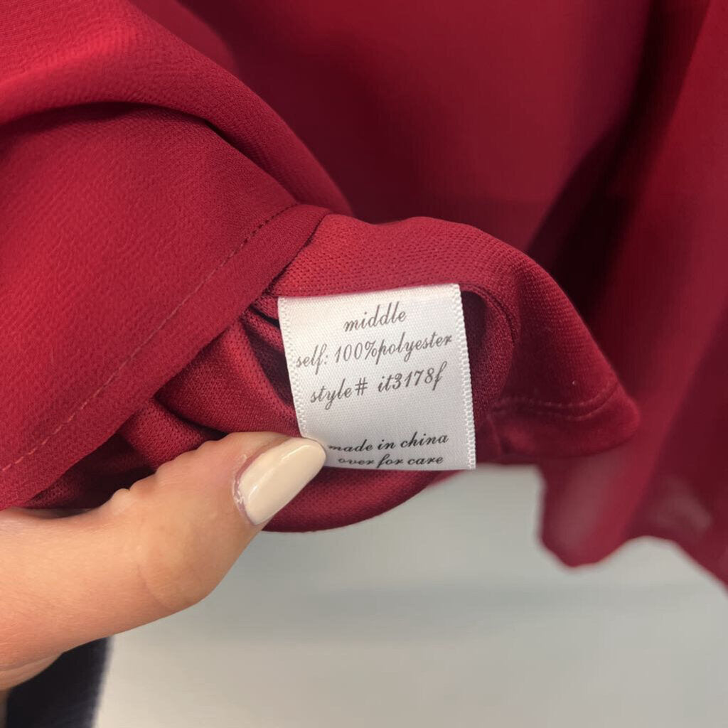 Buttons Burgundy Long Embellished Cuff Sleeve Cold Shoulder Top Medium