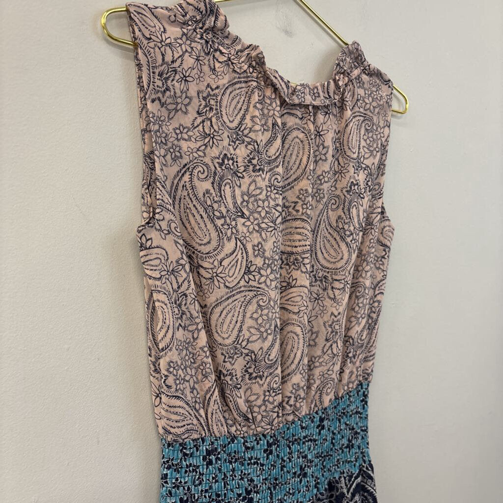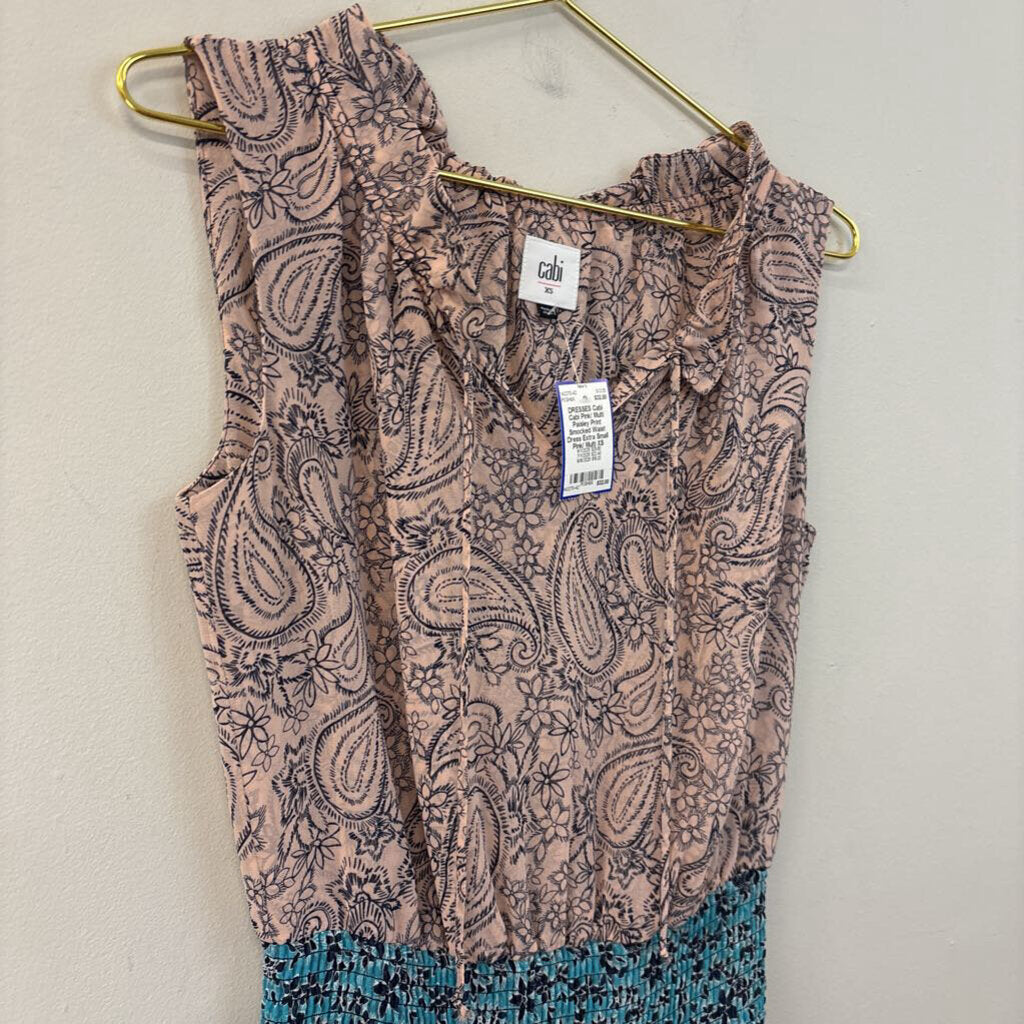 Cabi Pink/ Multi Paisley Print Smocked Waist Dress Extra Small