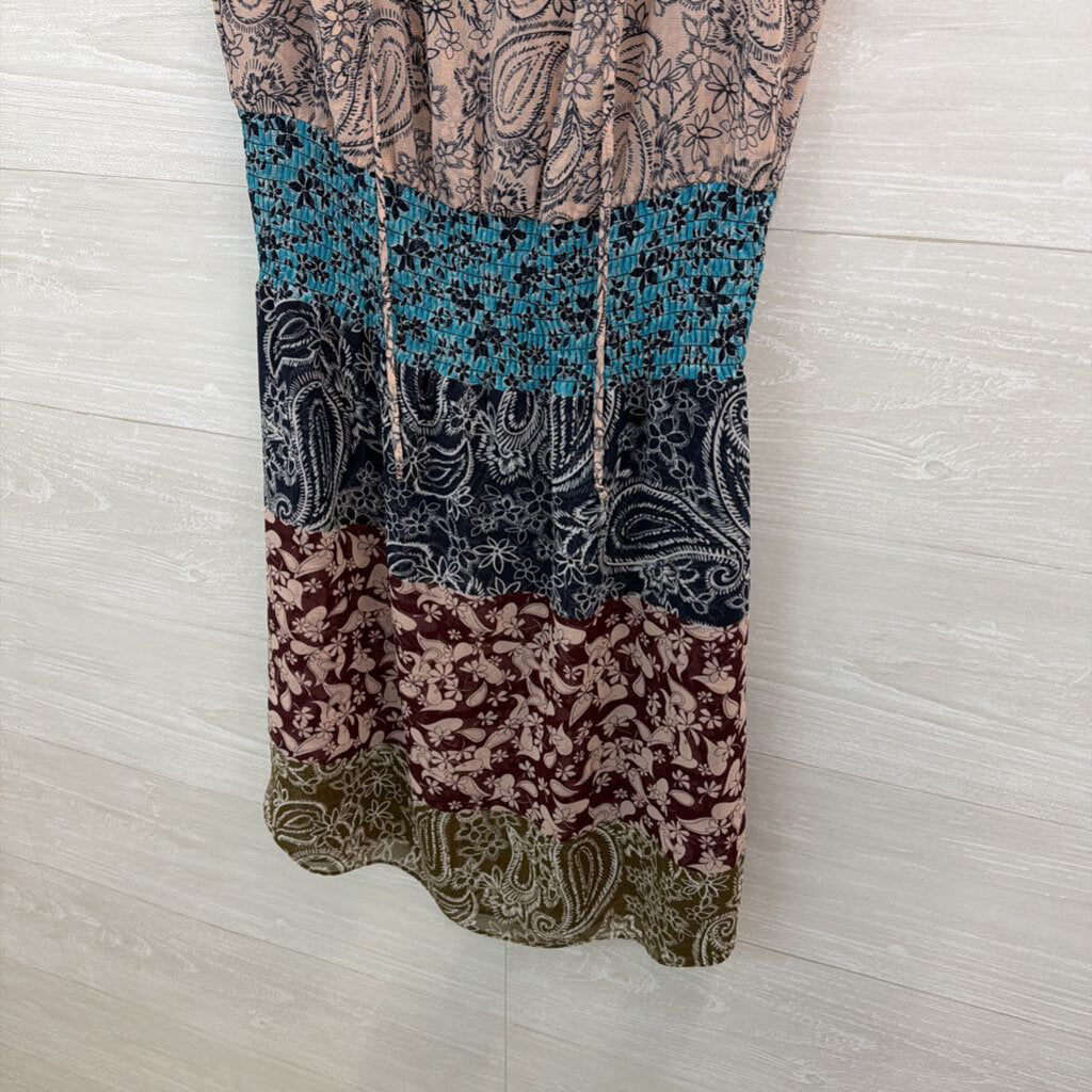 Cabi Pink/ Multi Print Smocked Waist Sleeveless Dress Small