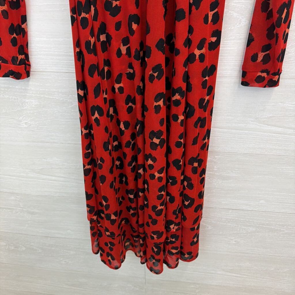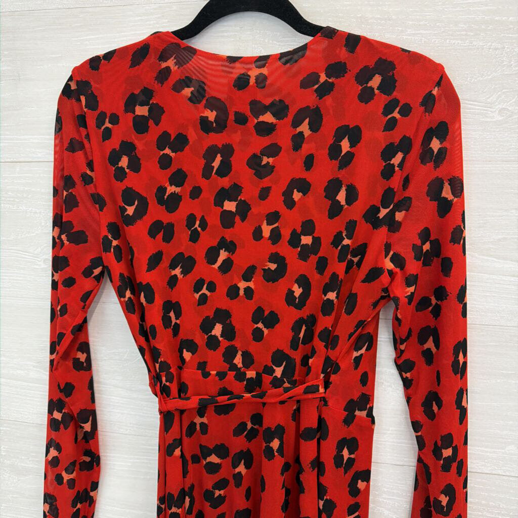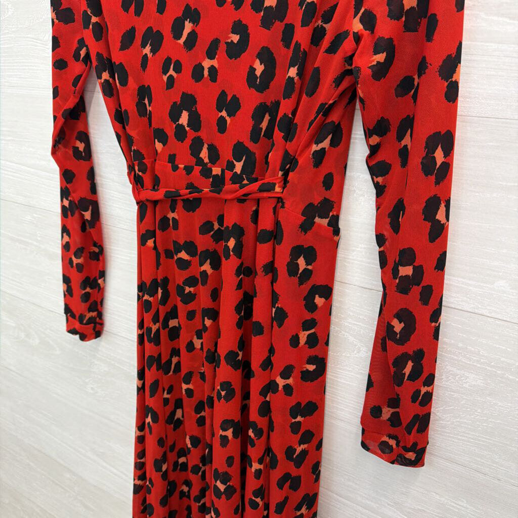 Cabi Red/ Balck Cheetah Print Long Sleeve Wrap Dress Small