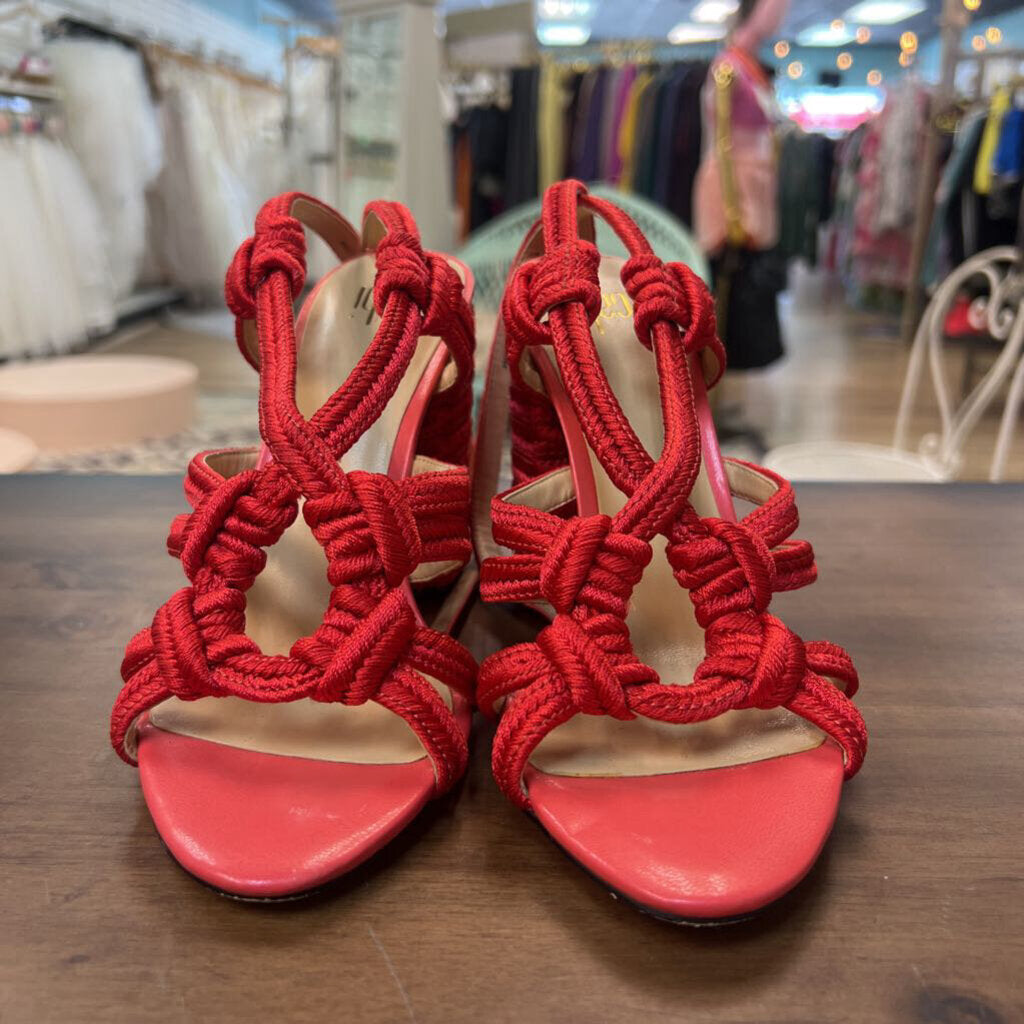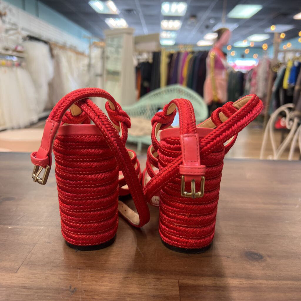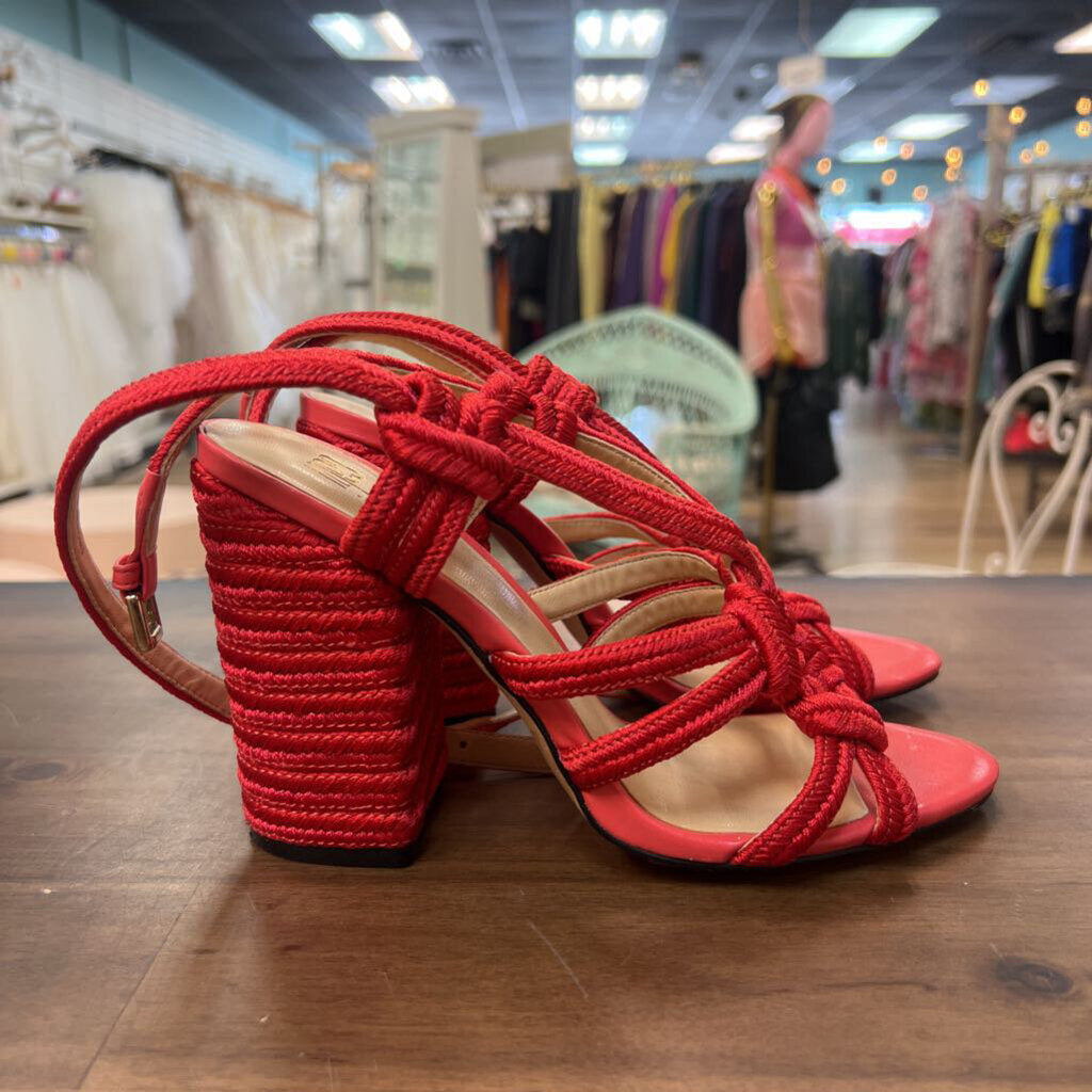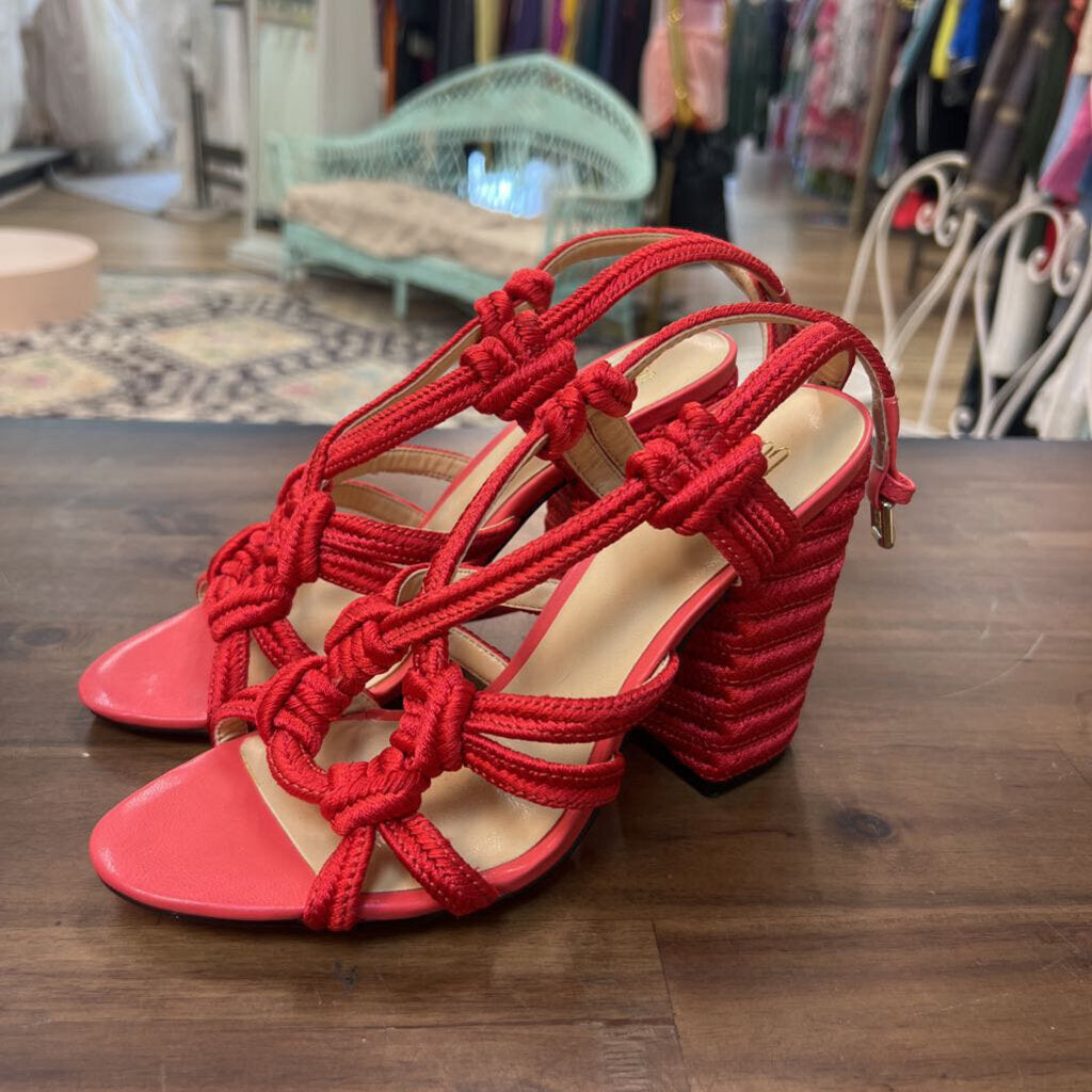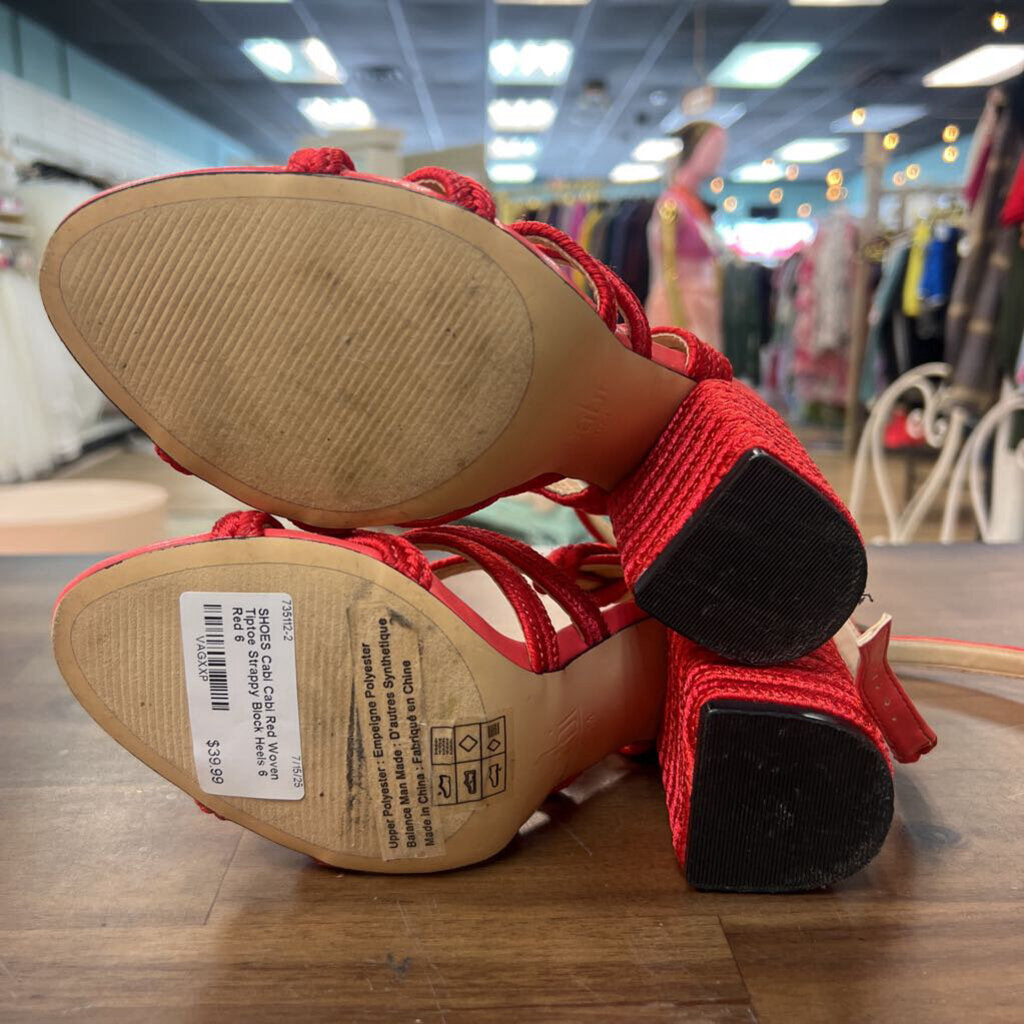 Cabi Red Woven Tiptoe Strappy Block Heels 6