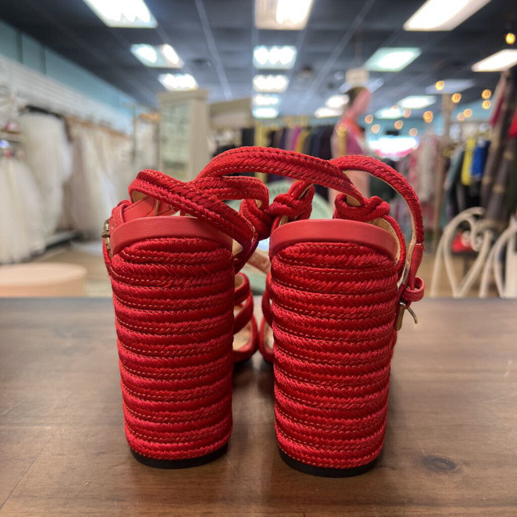 Cabi Red Woven Tiptoe Strappy Block Heels 7