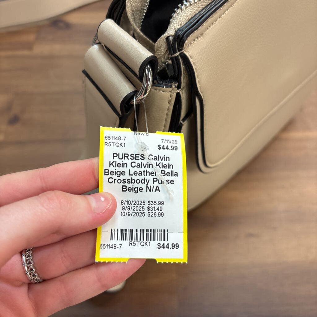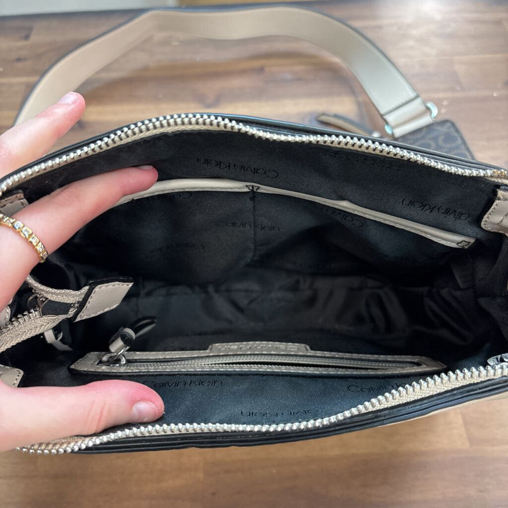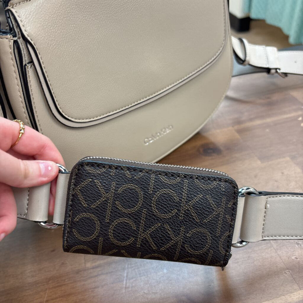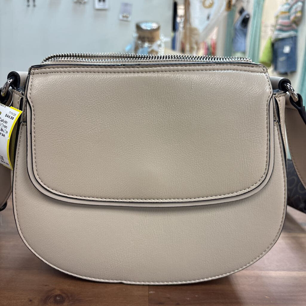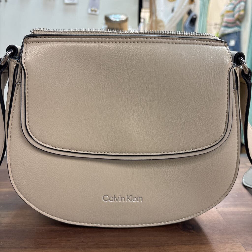 Calvin Klein Beige Leather Bella Crossbody Purse