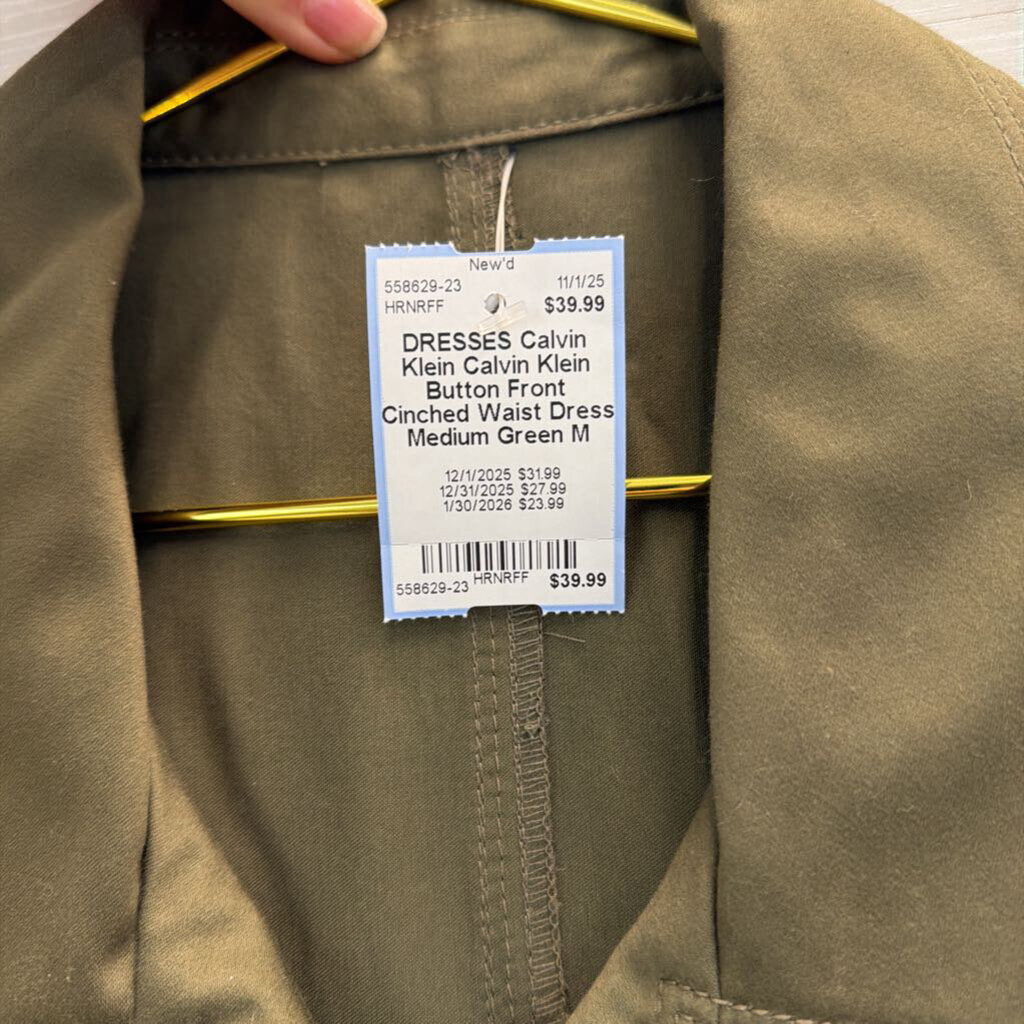 Calvin Klein Button Front Cinched Waist Dress Medium
