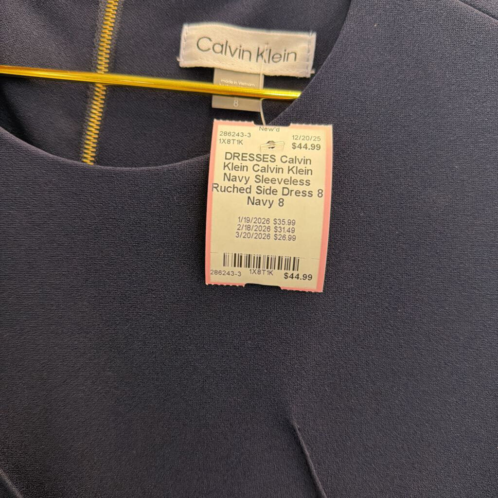 Calvin Klein Navy Sleeveless Ruched Side Dress 8