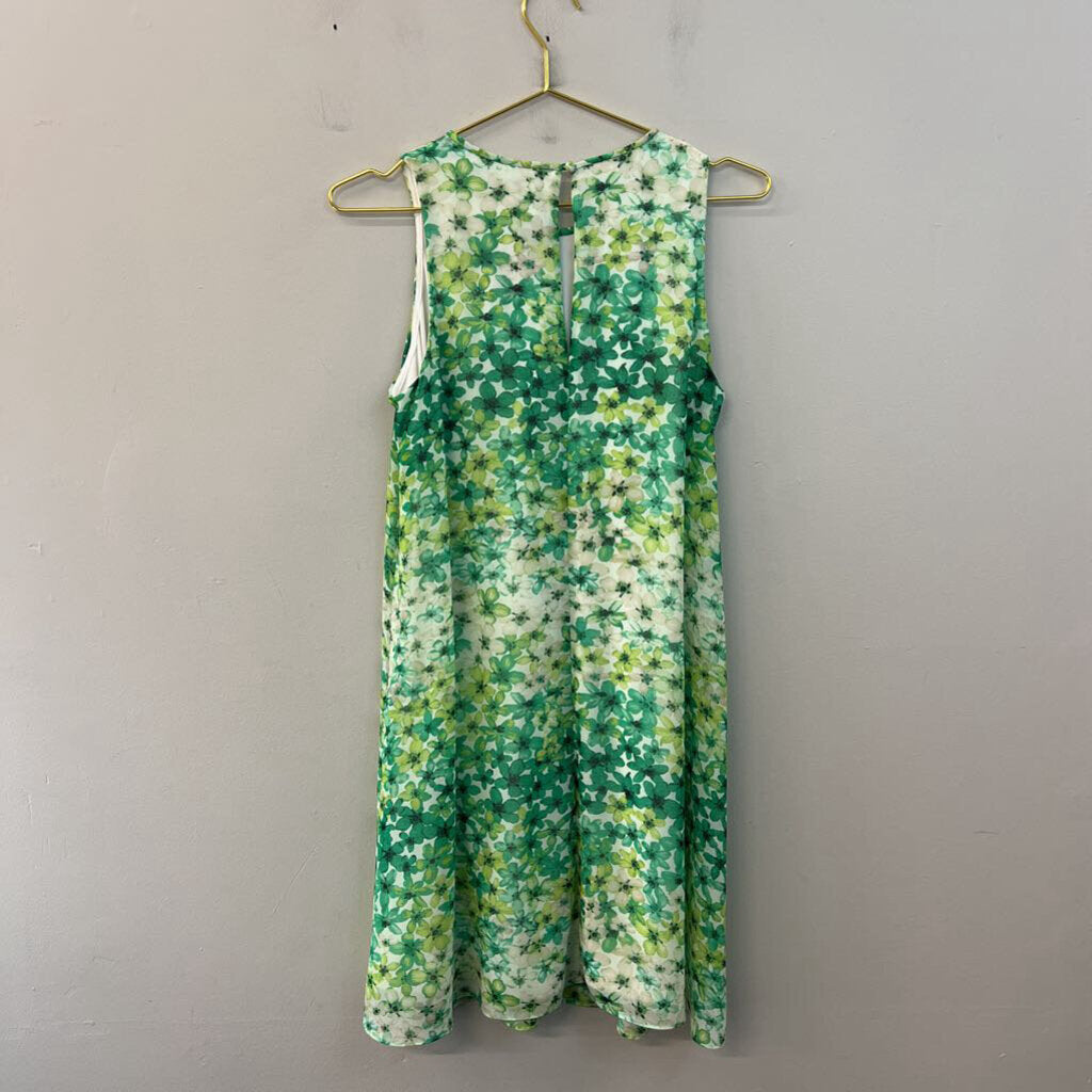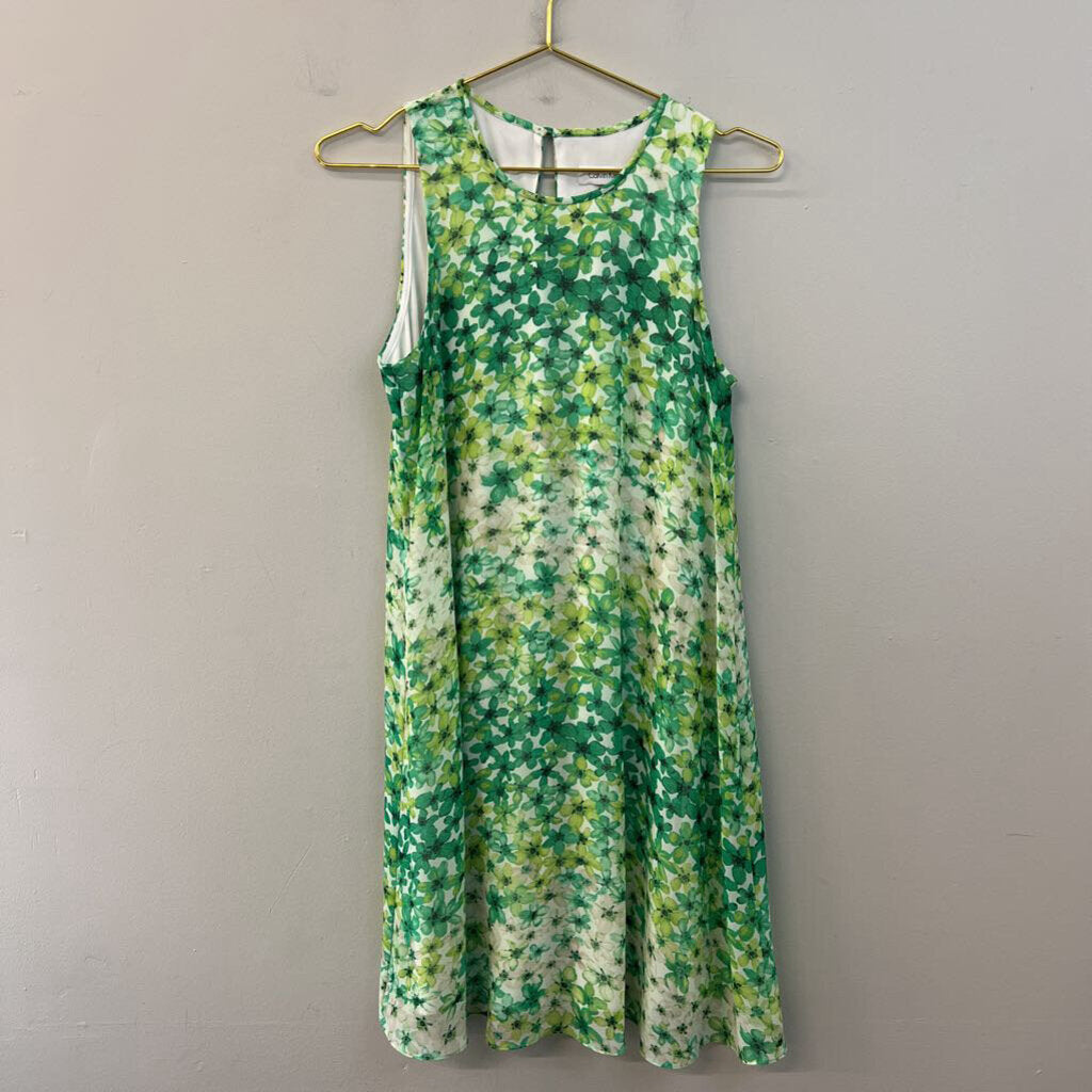 Calvin Klein White/ Green Flower Print Tank Shift Dress 8