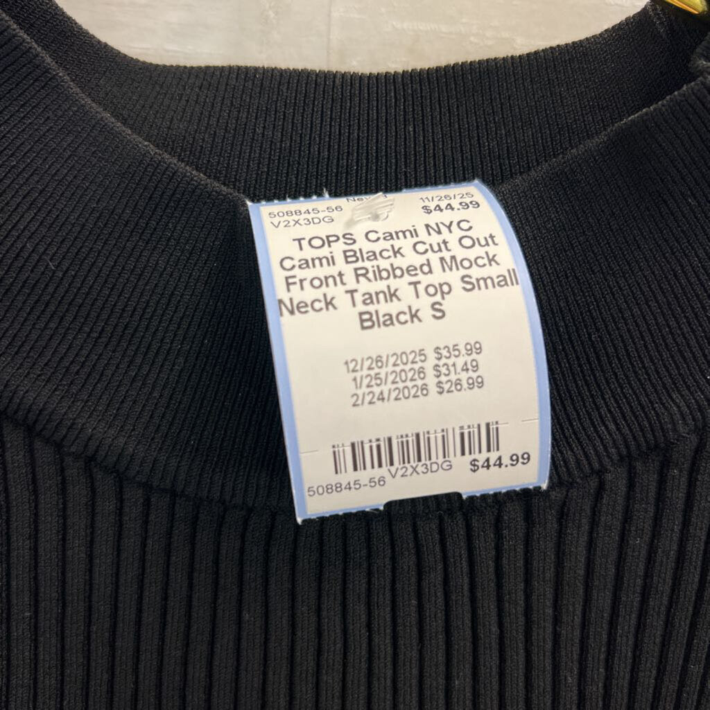 Cami Black Cut Out Front Ribbed Mock Neck Tank Top Small