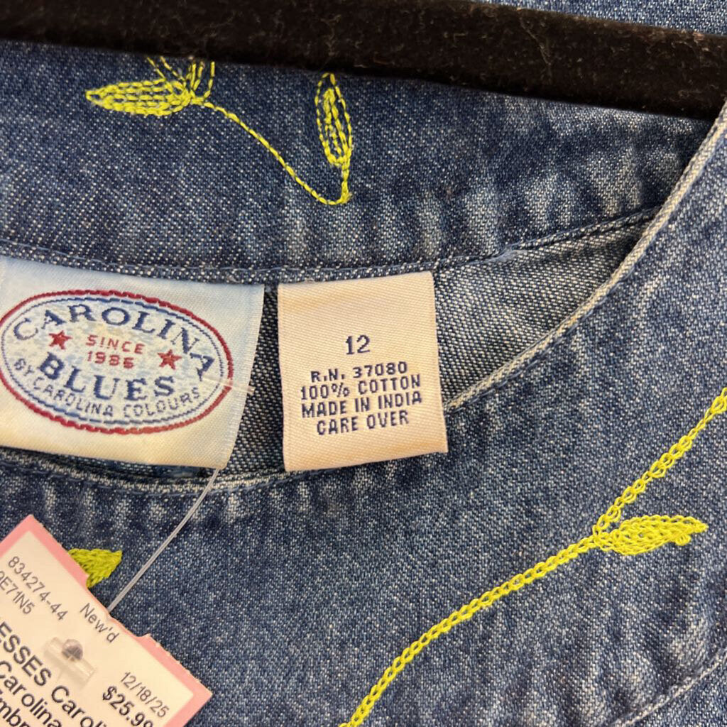Carolina Blues Denim Embroidered Sleeveless Shift Dress 12