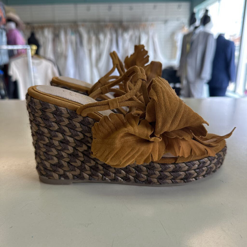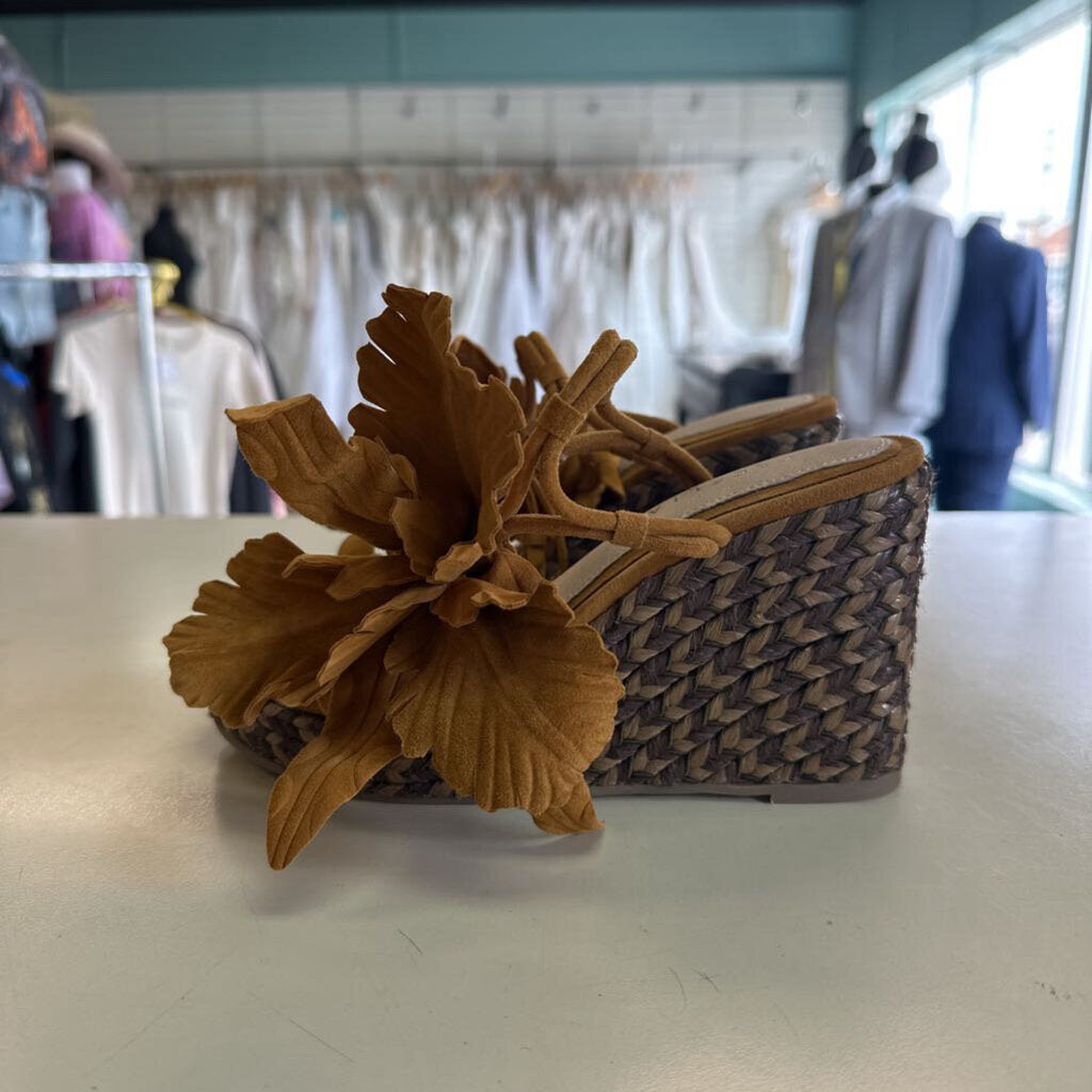 Cecelia New York Brown Espadrille/ Suede Flower Wedge Sandal Heels 6