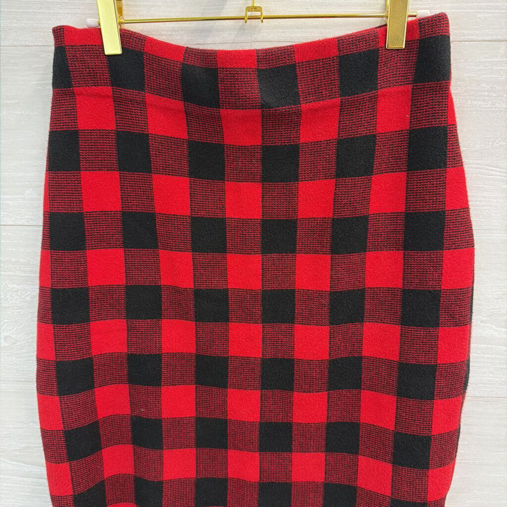 Chaps Red/ Black Gingham Sweater Skirt Small