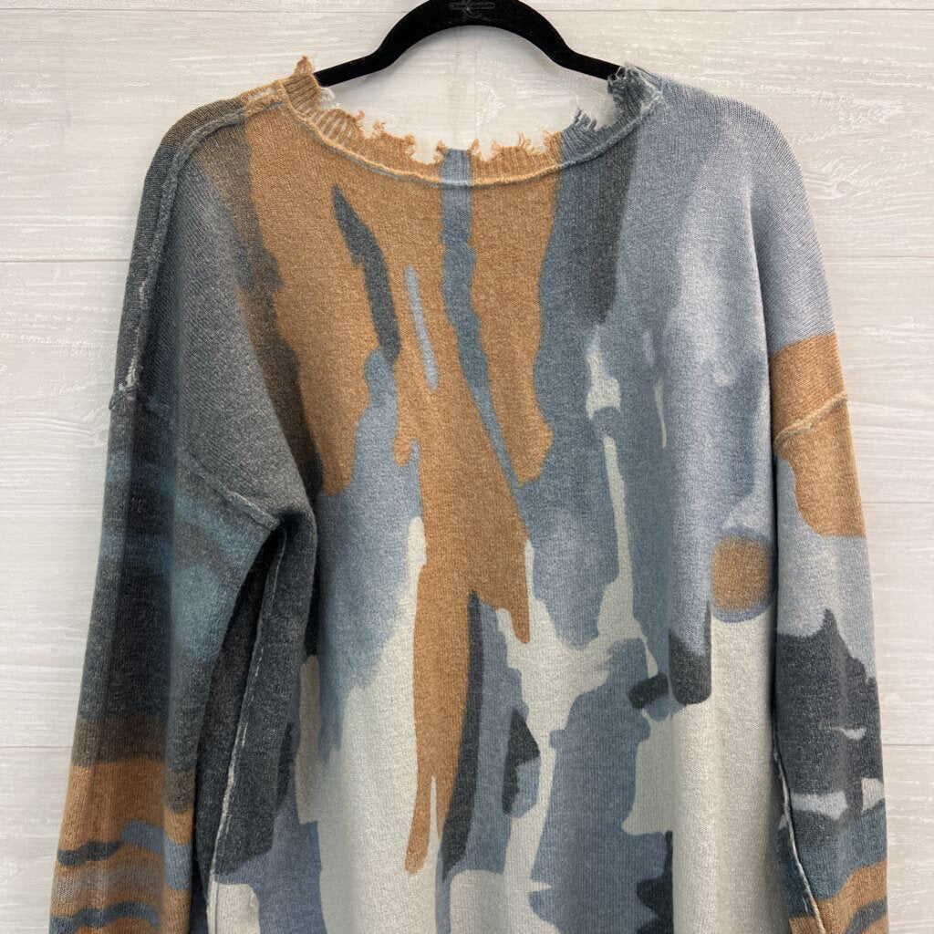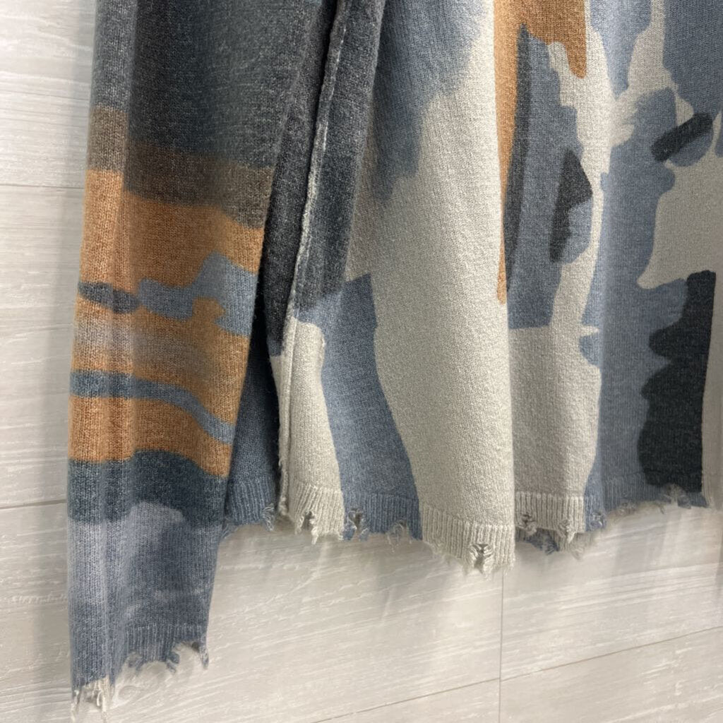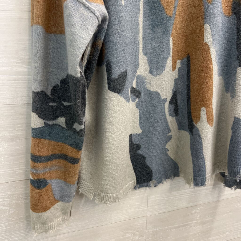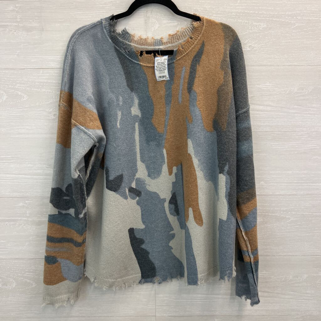 Charlie B Blue/ Brown/ Grey Print Distressed Edge Reversible Sweater Top Medium